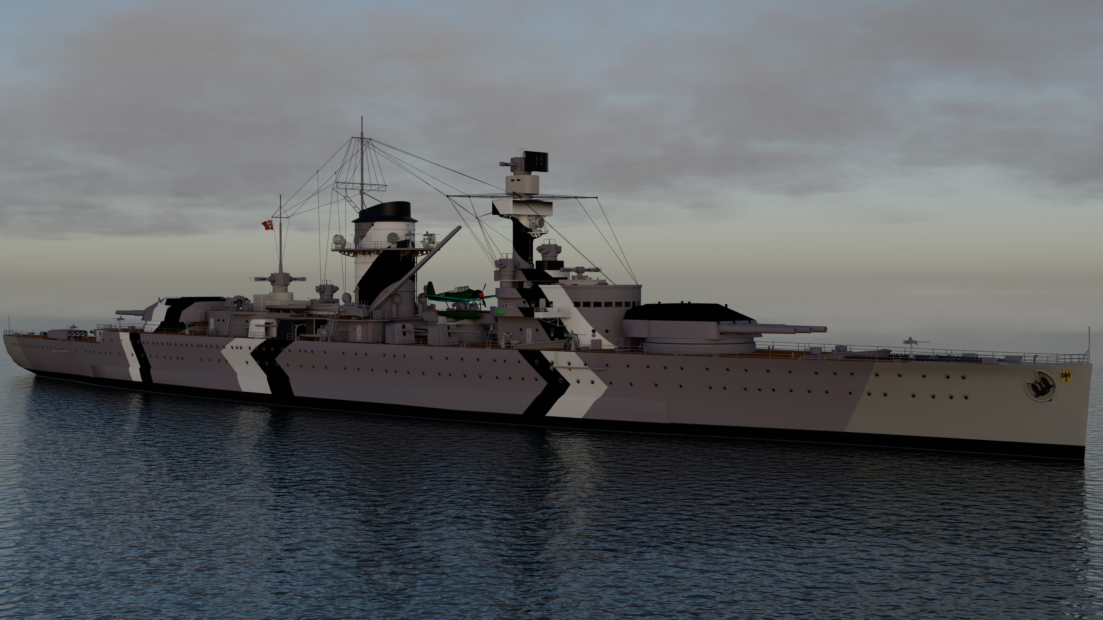 Auch das Panzerschiff Deutschland (später schwerer Kreuzer mit dem Namen Lützov) hat sich in Blender verliebt.