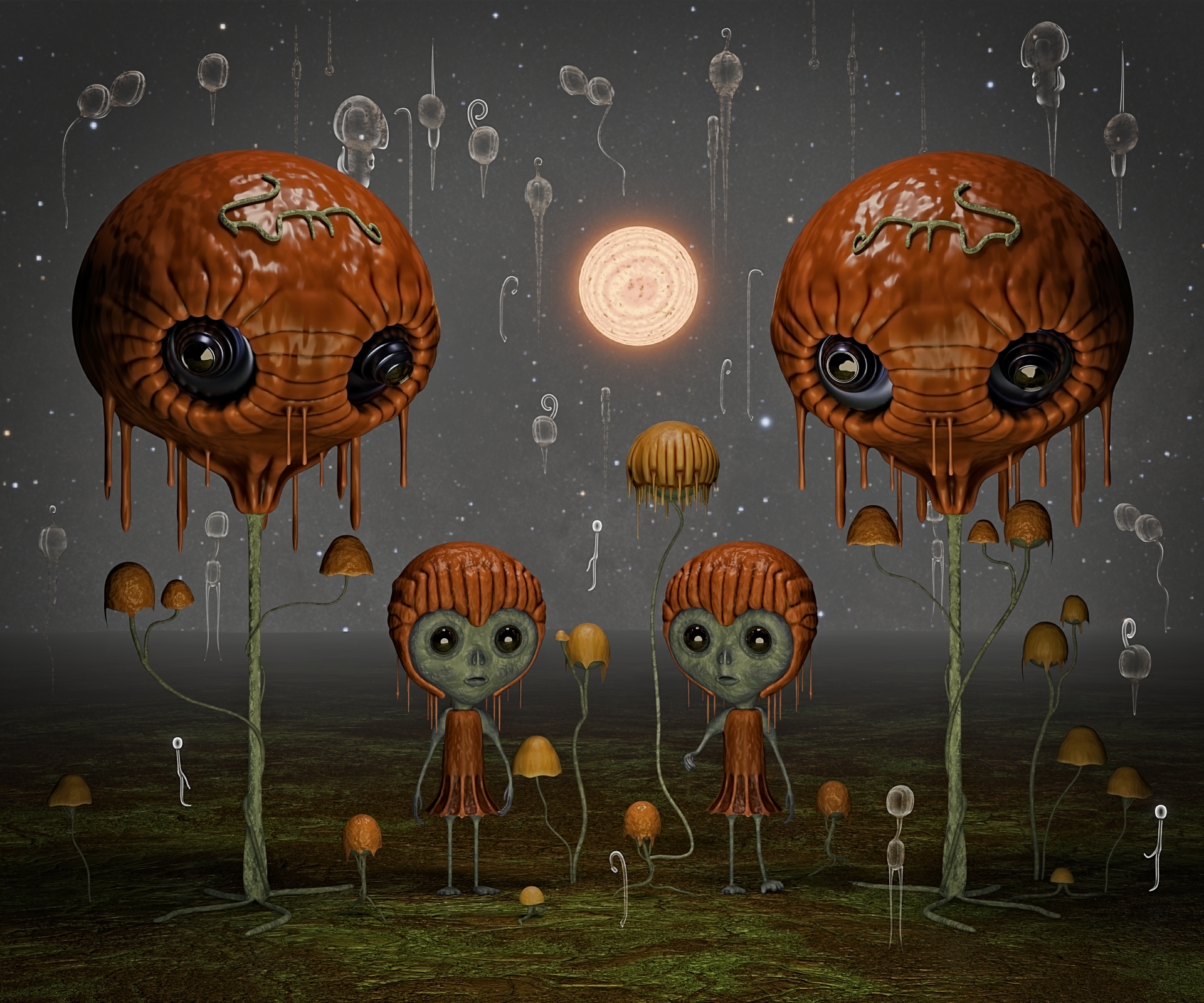 Inspiriert von KI-Concept-Art auf Pinterest, habe ich Halloween mal zu den Aliens gebracht. Irgendwo auf einem netten Planeten oder auch nicht