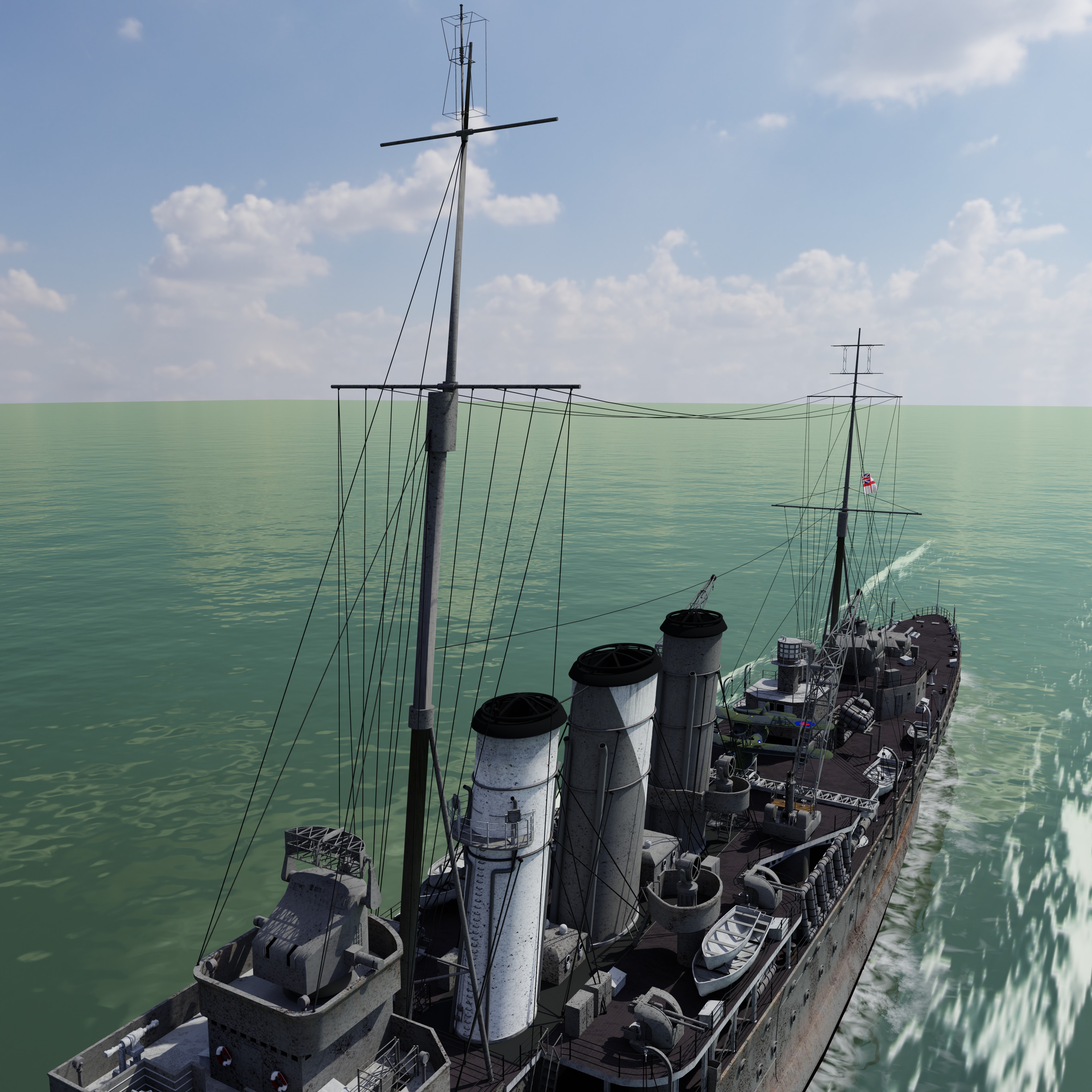 Antennenanlage der Norfolk mit Blick auf das Achterdeck. :saint:
