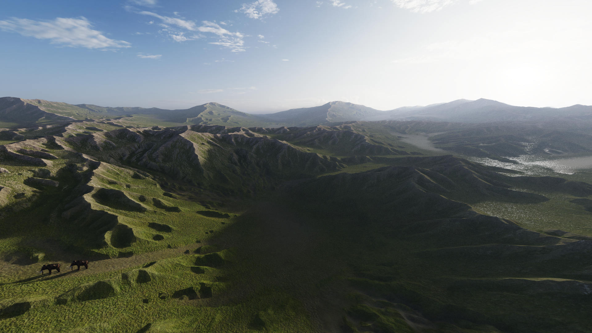 Dawnlands ist eine ausgedehnte Umgebung, die polygonales Gelände und HDRI-Hintergründe mit realistischen Atmosphäreneffekten mischt. Das Geländenetz ist speziell so gestaltet, dass es weit in die Ferne schweigt und gleichzeitig Details in der Szenemitte beibehält, wobei minimale Polyzahl verwendet wird, während die Qualität erhalten bleibt. Das eingeschlossene Gelände kommt mit trockenen und gemäßigten Presets, die beide über sumpfige Varianten verfügen, die auf die jüngsten Niederschläge bedeuten. HDRI-Hintergründe wurden am frühen Morgen aufgenommen und verfügen über dramatisch detaillierte Wolken und erheblichen Dunst.