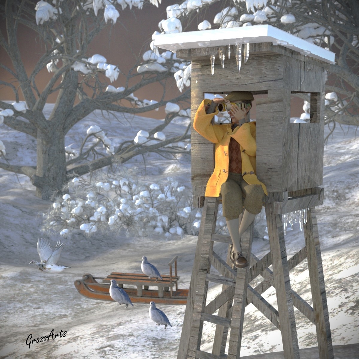 Gesucht werden: Taube Tauben, Schneehasen und Moorhühner mit Eisbein ... und nicht zu vergessen: Der Fuchs, der schon mal vorsorglich die Weihnachtsgans gestohlen hat. In so nem Jagdforst ist auch ohne Flinte echt was los.