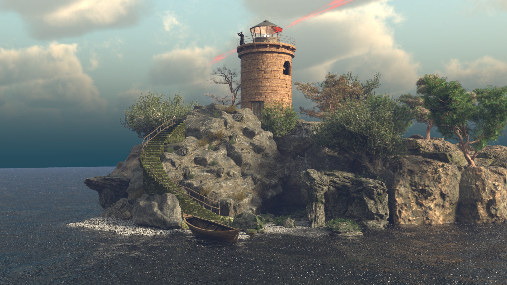Das Material ist alles DAZ, bis auf den Leuchtturm. Der ist als fbx aus Blender importiert und mit anderer Textur unterlegt.