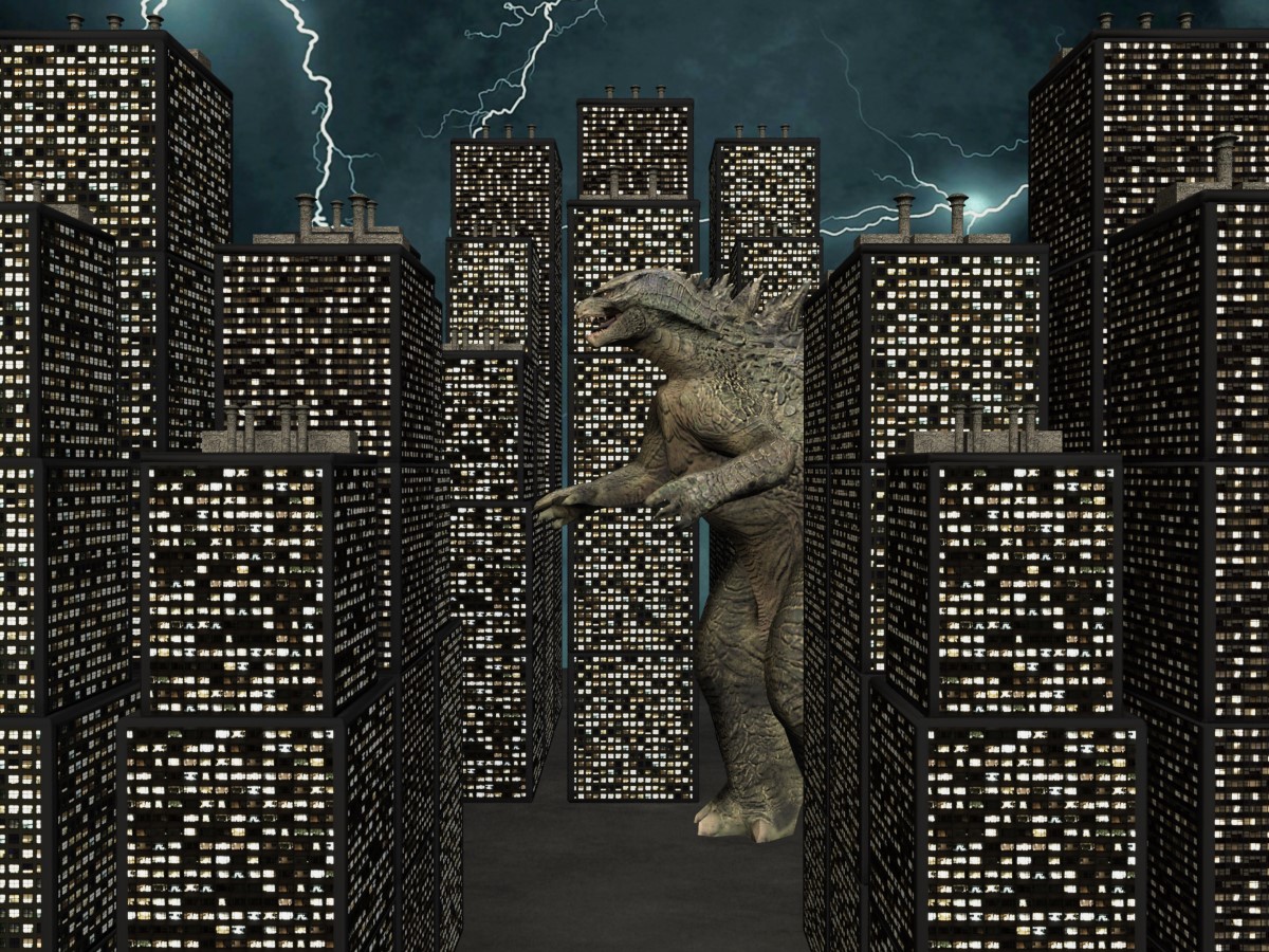 Hier Godzilla in Big City in einer Gewitternacht. :S