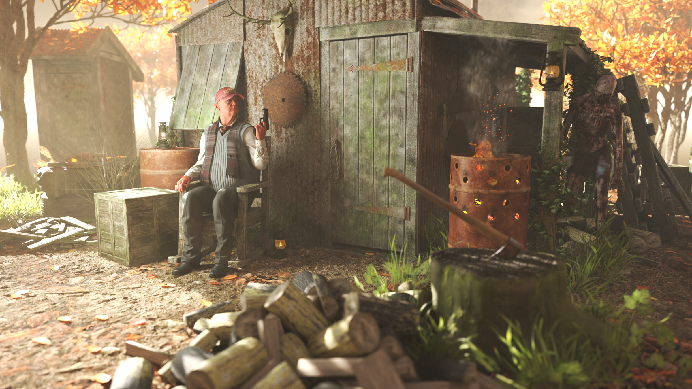 • Ob da eine Pistole reicht. Bei so einem Besucher hätte ich die Axt auch gern griffbereit in der Nähe.