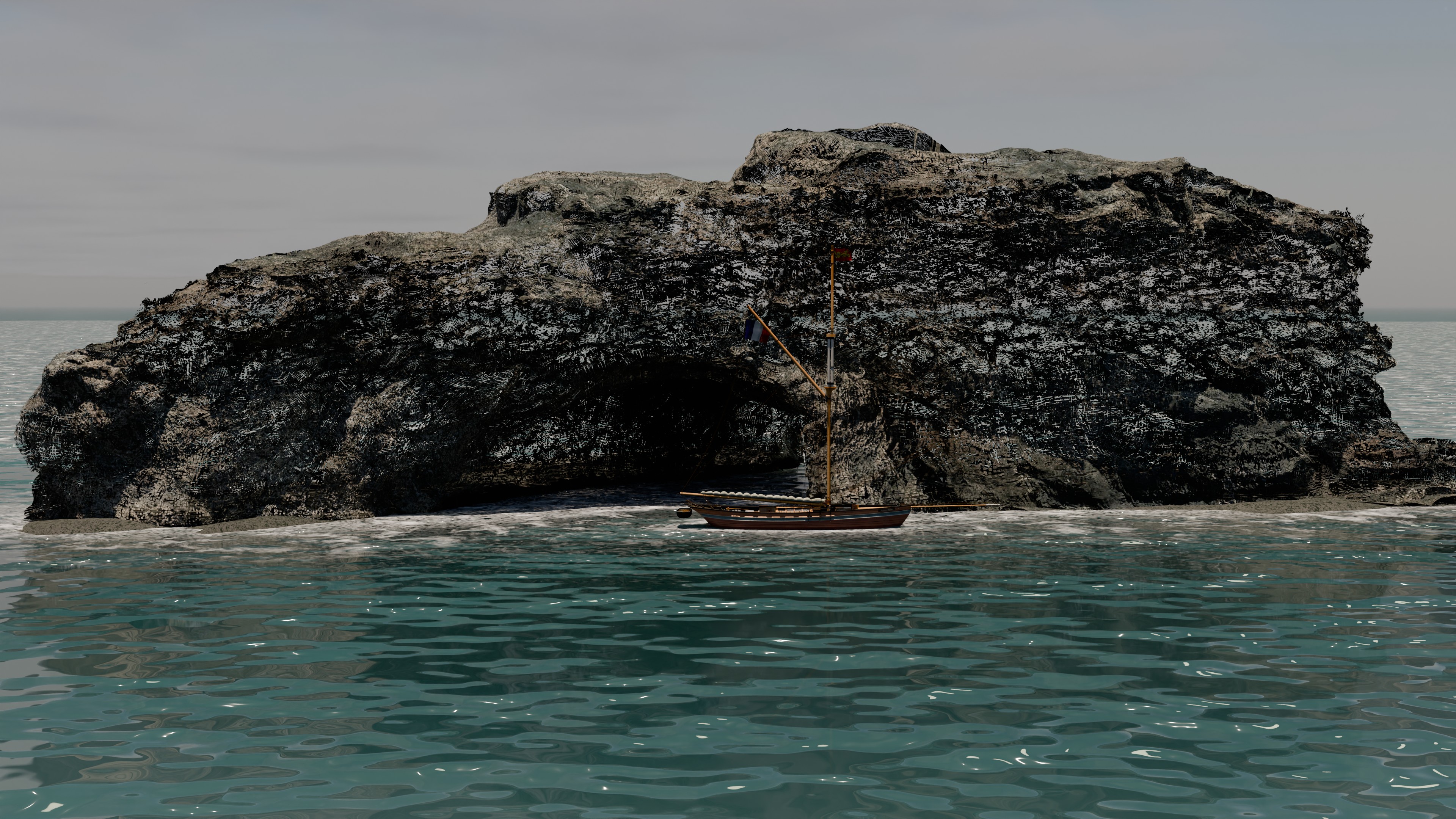 Sieht sehr gut aus . Ist Wasser und Felsen ein Foto oder mit Blender.....