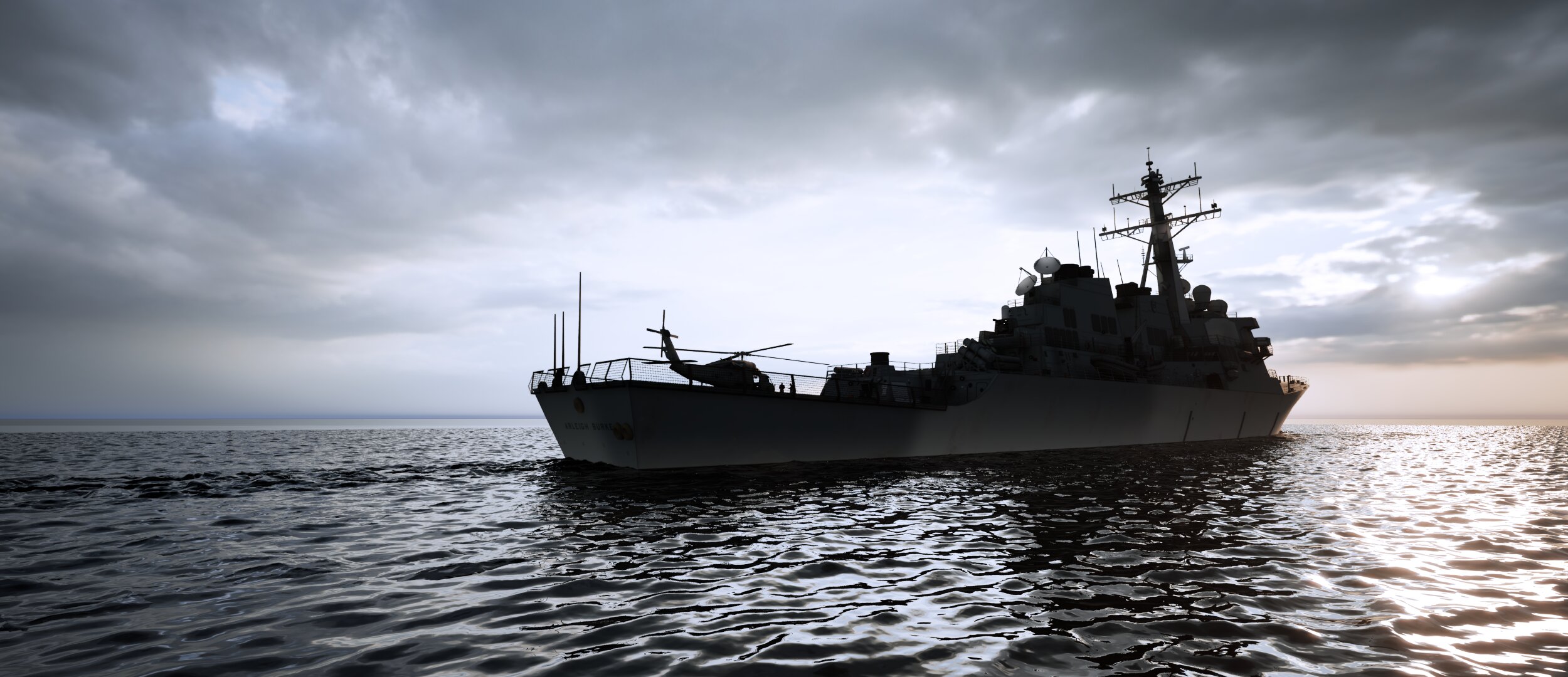 1:1 Low poly model US NAVY USS Arleight Burke guided missile destroyer.
