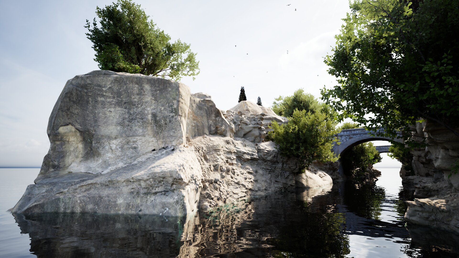 Ich würde noch etwas Gestrüpp oder dürres Gras hinein pflanzen, im Moment wirkt der Übergang vom saftigen Grün zum Fels noch etwas hart..