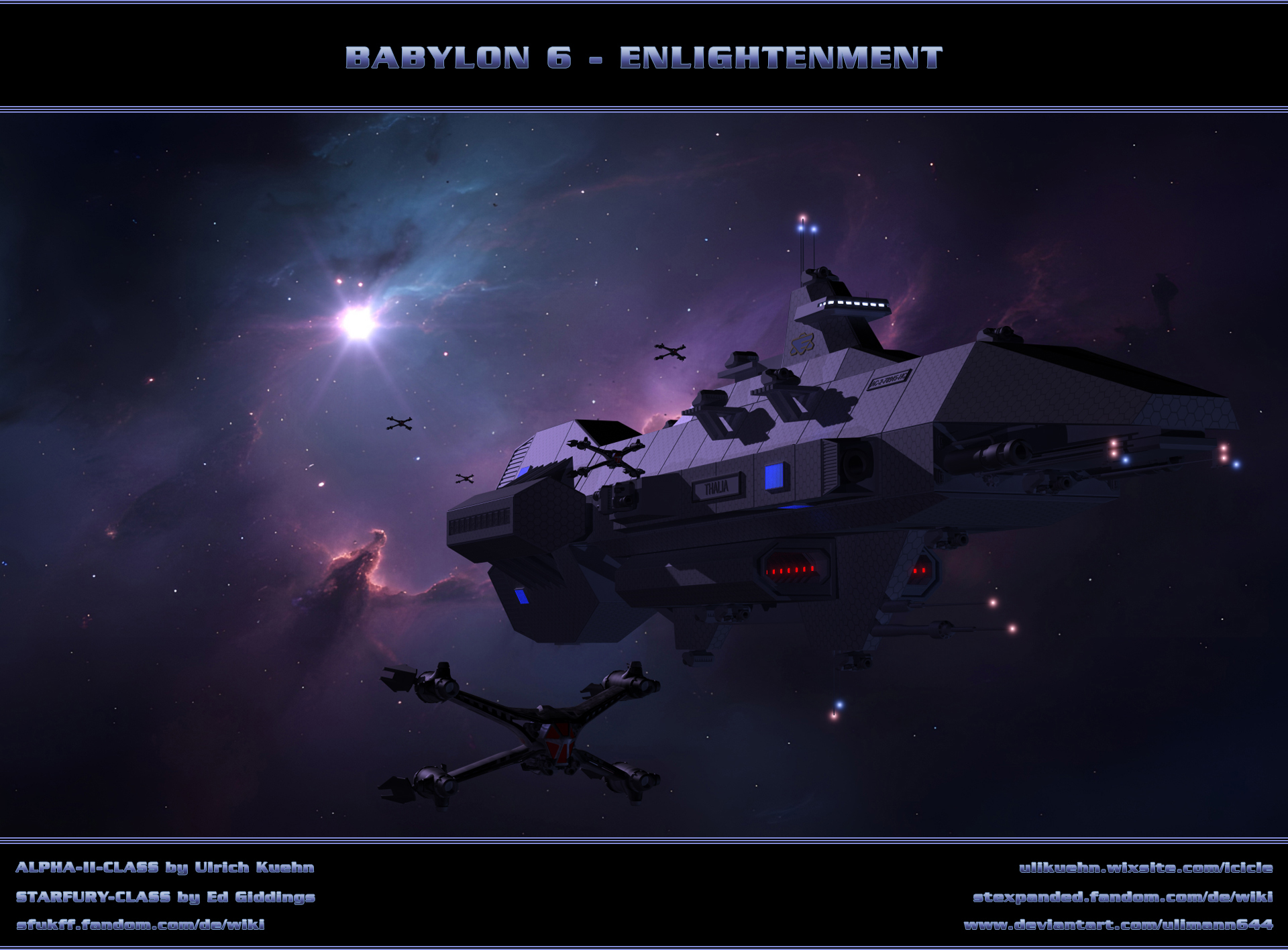 Hier eine weitere Szene mit der THALIA, einem Schweren Kreuzer der ALPHA-II-KLASSE, die in meiner Fan-Fiction-Serie BABYLON 6 vorkommt.