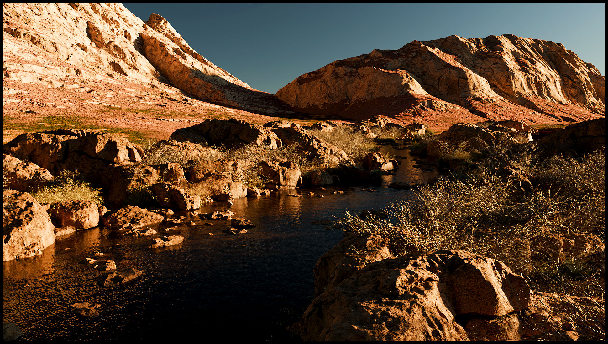 Sehr ansprechendes Gelände, gut arrangiert alles, auch die Lichtstimmung .