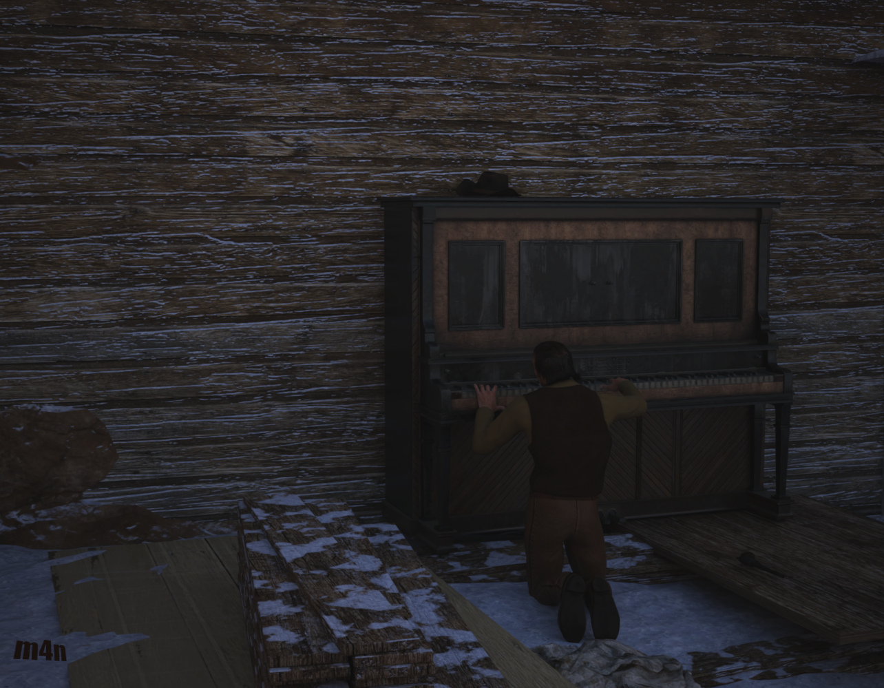 So andächtig wie er da kniet, könnte man meinen, das Klavier sei für die Kirche im Ort bestimmt. Aber das Leben ist nun mal kein Wunschkonzert. Das Instrument kam spät, viel zu spät – und wer schon einmal versucht hat, in der Dämmerung ein Klavier durch den Schnee zu bugsieren, weiß: Für Petroliumlampen war da keine Zeit.