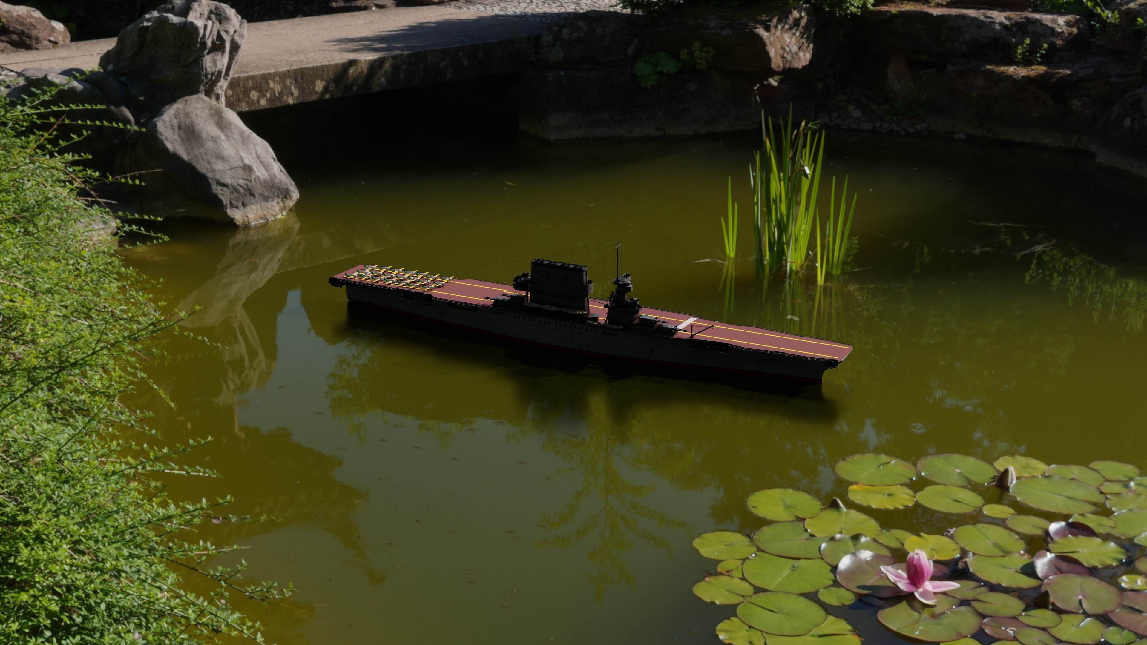 Es passt sich sehr gut ein in den Hintergrund.. ein Kleines Kriegsschiff im Land der Riesen...