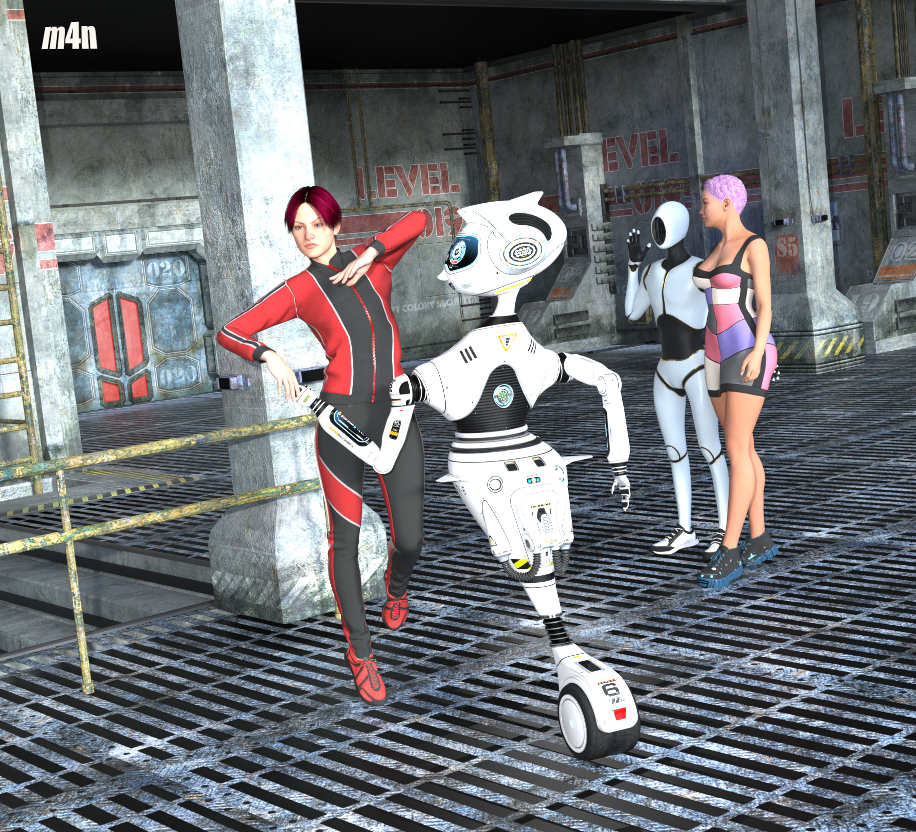 das war kein gezieltes Führen – die Armpose stammt noch aus der Grundstellung und wurde gar nicht verändert, weil sie in der Szene zunächst verdeckt war. Erst durch die spätere Kameradrehung wirkte es so, als würde da jemand frech zugreifen. Das kommt davon, wenn man beim Rendern nicht an solche Perspektiven denkt … aber keine Sorge, der Bot bleibt höflich – zumindest solange ich die Kamera im Griff habe.