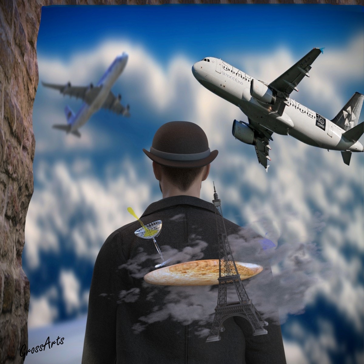 Sieht aus wie jemand, der nach Paris wollte, aber nur bis zum Bäcker um die Ecke kam.