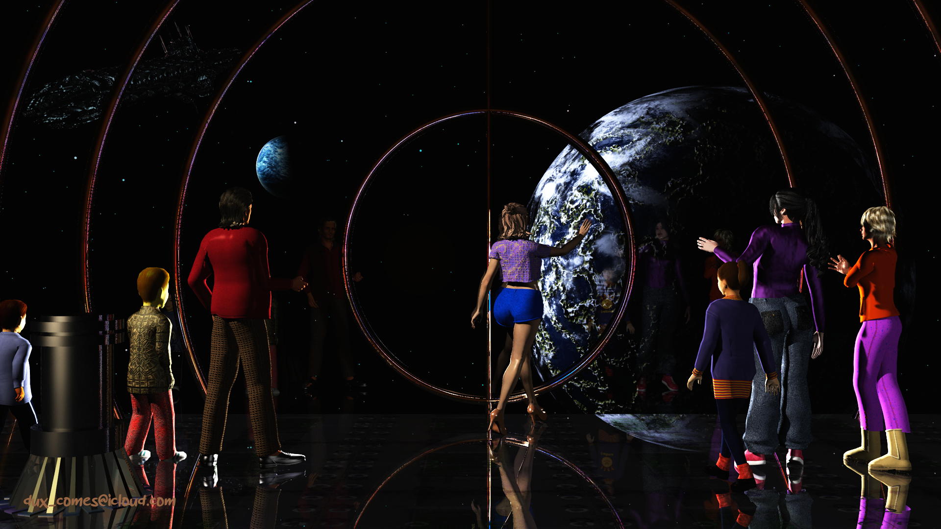 Dank unserer Astrophysikerin Samara Carter (rechts im Photo) konnten wir die Kollisionsbarriere durchbrechen und in zwei Transgraviton Sprüngen den Standort meiner Mutter erreichen. Die gesamte Reisezeit betrug 57 Tage für 2.8 Millionen Lichtjahre! Sie ist ein absolutes Genie. Vermutlich der hellste Kopf in unserer Truppe.