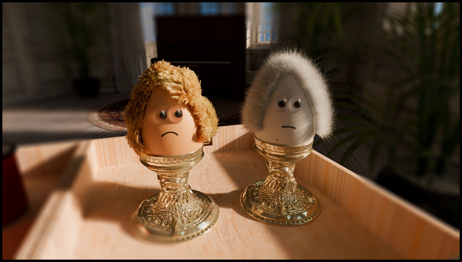 • Die Becher sind von Sketchfab free. Die Eier hab ich selbst gemacht(stolz guck) :) Als ich "Zotteldino" fertig hatte waren die 2 die logische Schlussvolgerung :D .