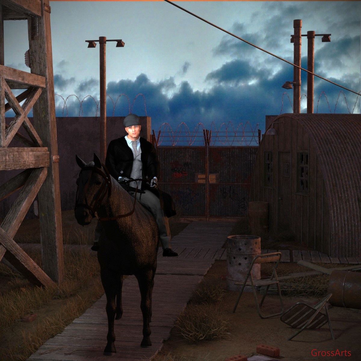 Tommy Shelby reitet über eine verlassene Militärbasis...