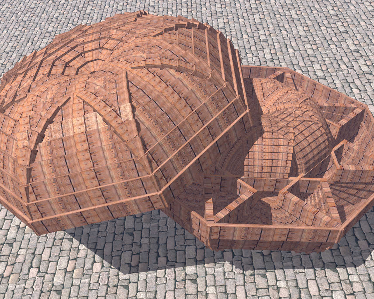 Ein einziges Rechteck, immer wieder kopiert.Erstellt mit Bryce 4 bis 7.