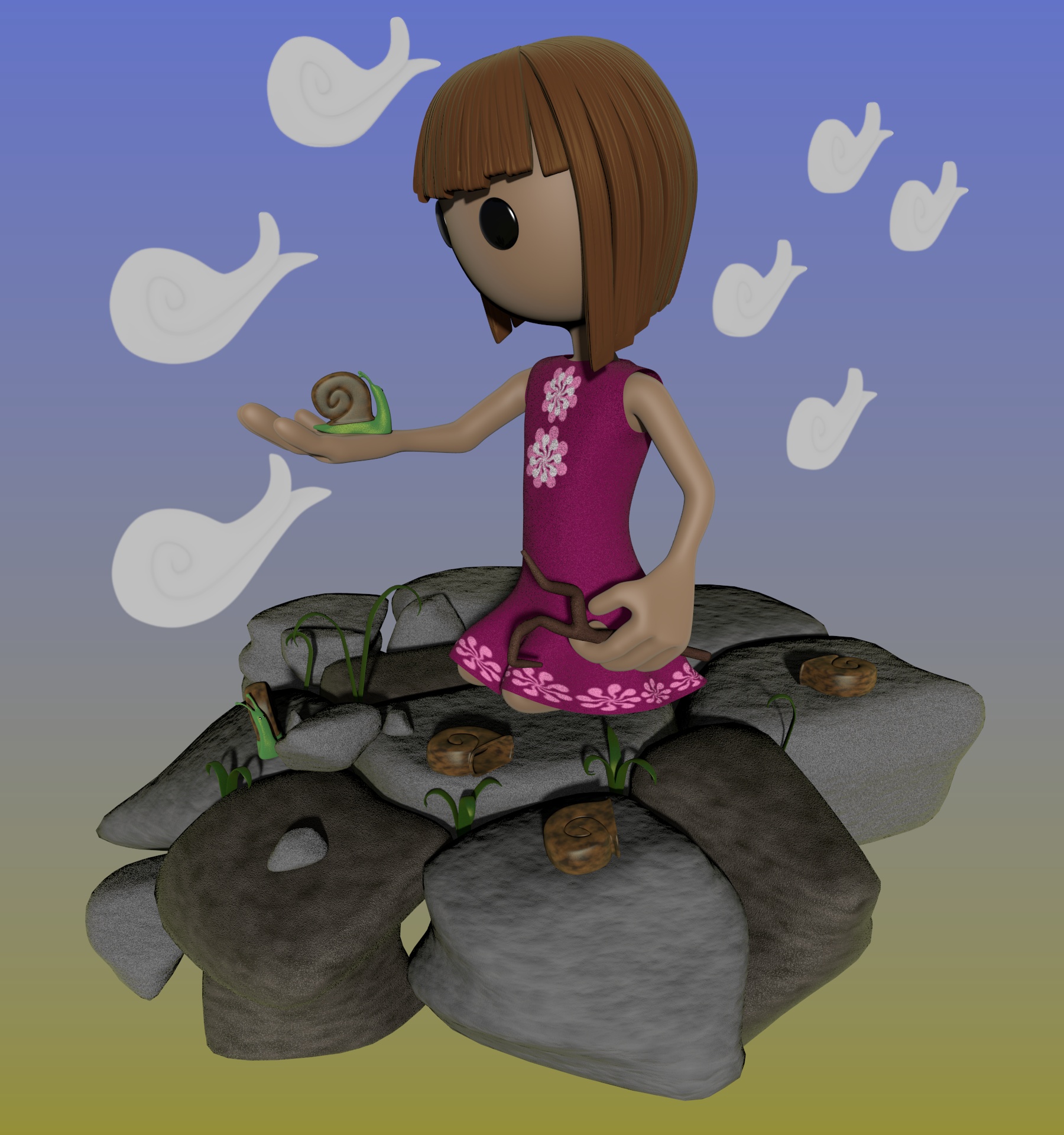Nach einem Tutorial von Antony Ward aus der 3D World 159. Körper, Gras und Holzzweig sind mit dem neuen Skin-Modifier von Blender entstanden.