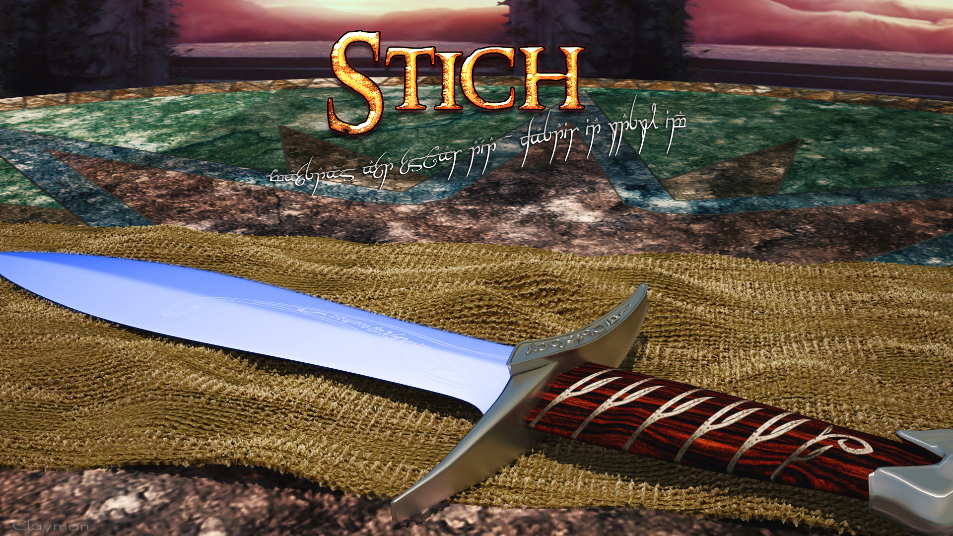 Die Klinge des Schwertes schimmert blau, wenn sich Orks in der Nähe befinden. In die Klinge und im Knebel sind elbische Tengwar-Runen eingraviert. Sie besagen in Sindarin, der Sprache der Grauelben: "Maegnas aen estar nín - dagnir in yngyl im" ("Stich werde ich genannt - Ich bin der Fluch der Spinnen").