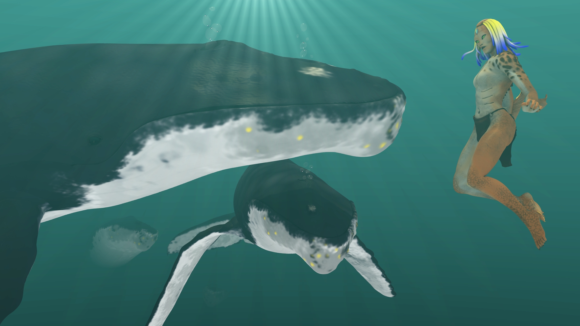 Verwendete Programme: Blender 2.69/Interner Render, 3D-Coat, CPP. Fischfraukonzept von Michael Cunningham aus dem Buch Anatomie für Fantasyzeichner von Glenn Fabry. Alle Modelle Eigenbau.