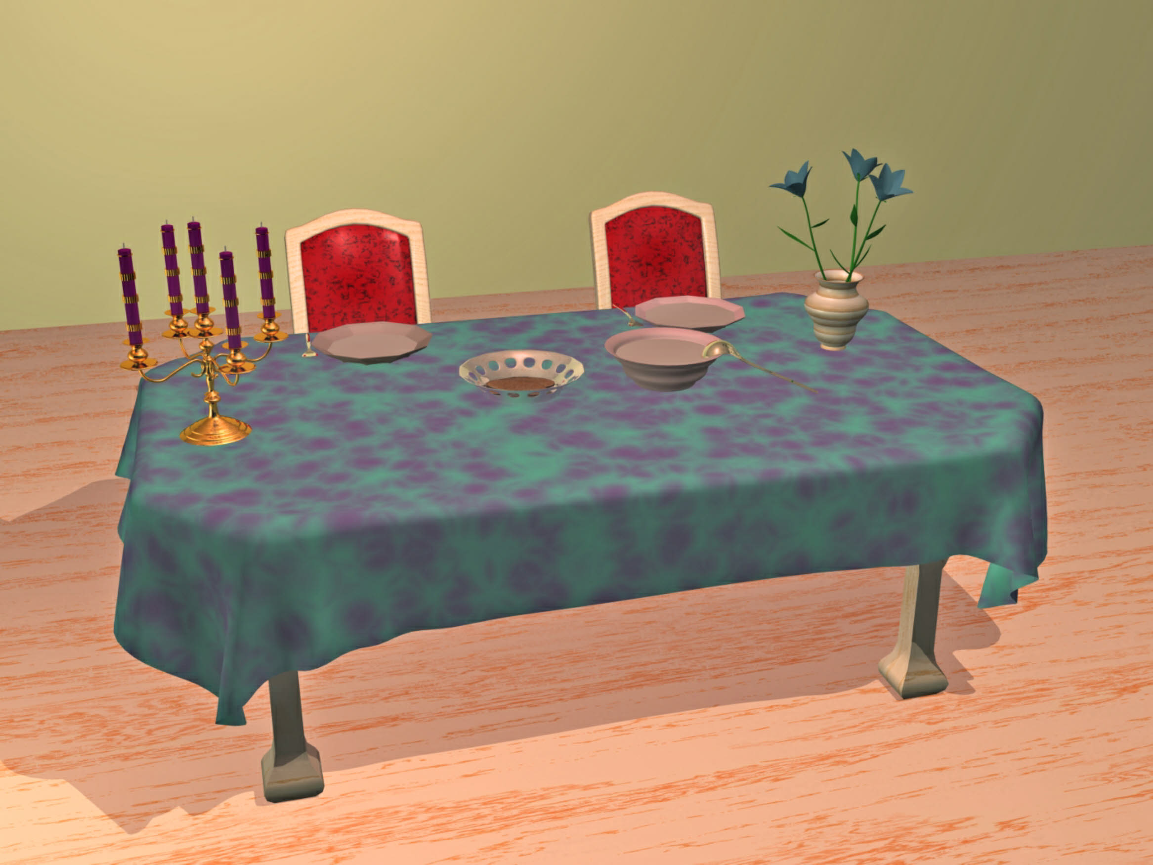 Modeliert mit Hexagon 2.5, Tischdecke mit Blender in Position gebracht