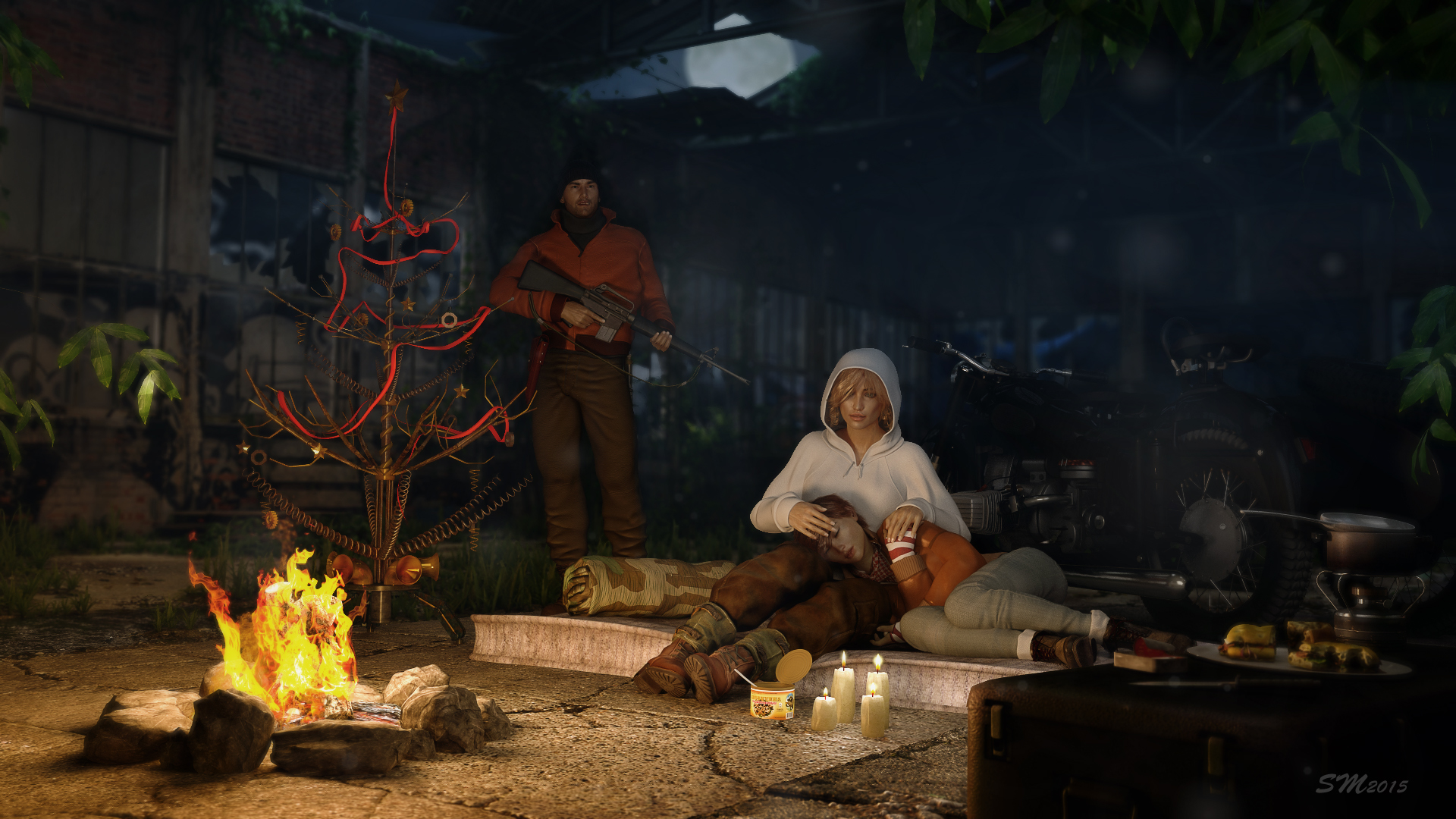 Das ist aber ein spezieller Weihnachtsbaum, endzeitmäßig. Schöne Szene