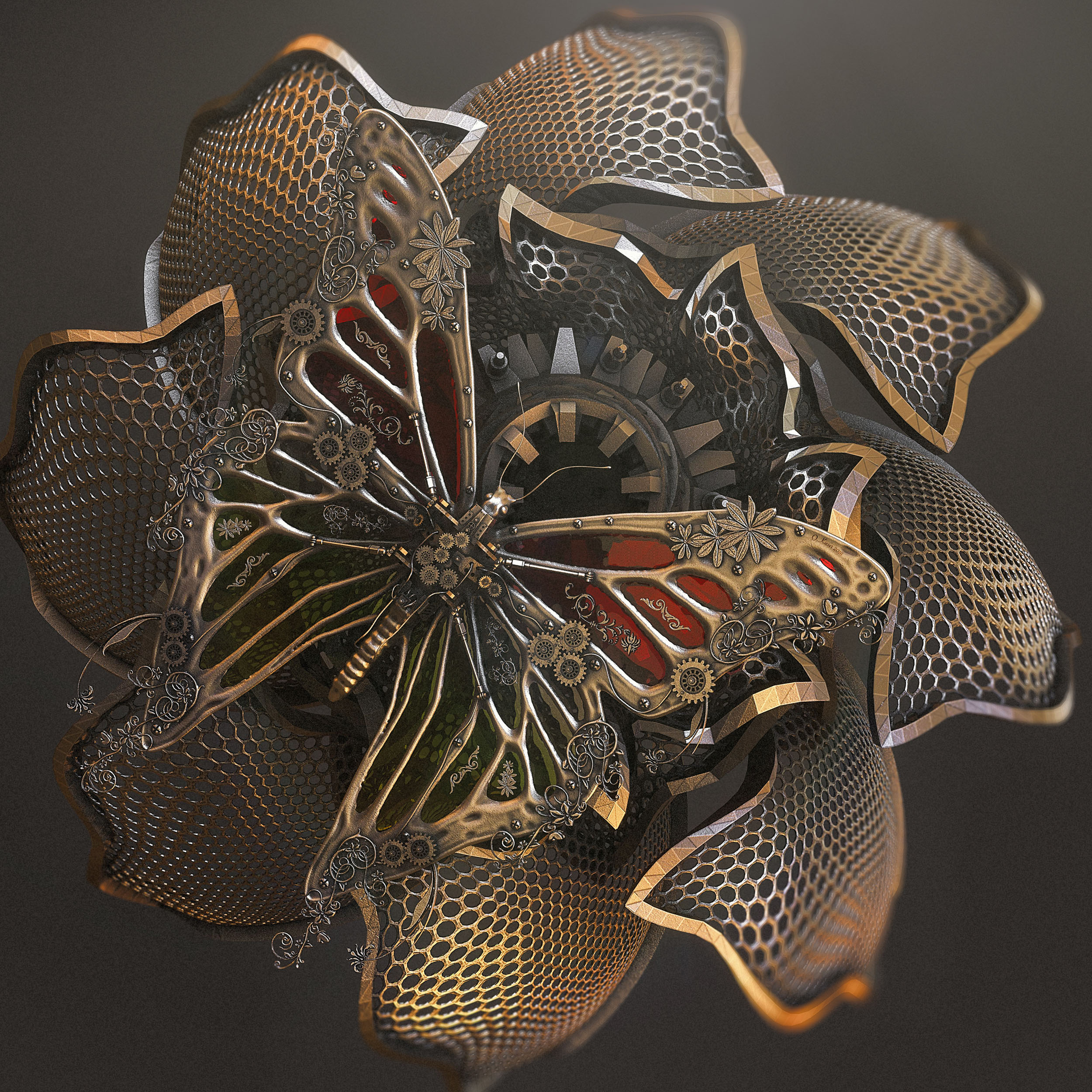 . Könnte mir hier aber auch eine total ander Metallfarbe bei der Pflanze vorstellen. Altes Messing oder so.