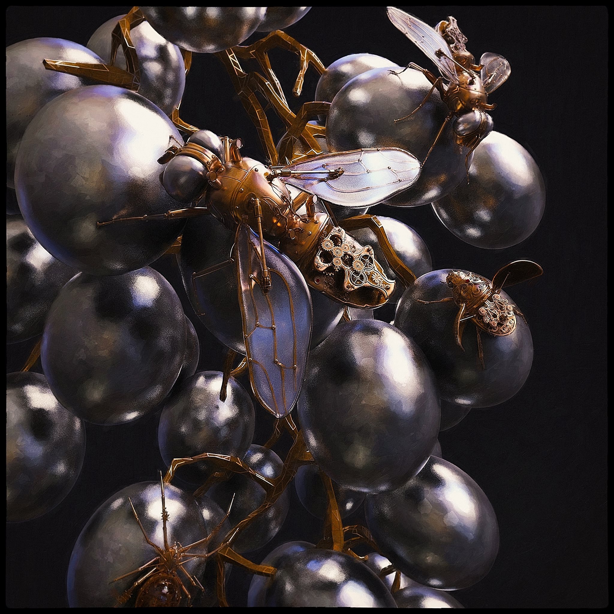 Ich glaube diese Spinne jagt keine Insekten, die steht mehr auf einen Schluck Kriechöl . Das gesamte Werk als Brosche oder Fibel würde bestimmt gut ankommen .