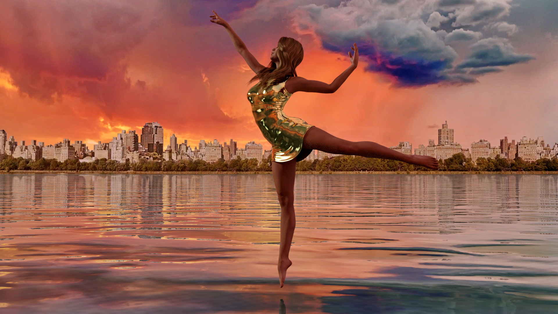 Jetzt genau in diesem Augenblick sieht es sehr leicht aus........Du zeigst uns halt nicht was dann passiert, wenn ihr Fuß das Wasser berührt und sie merkt, das Wasser doch keine Balken hat . Schöner Background, klasse Körperhaltung und Wasseroberfläche.
