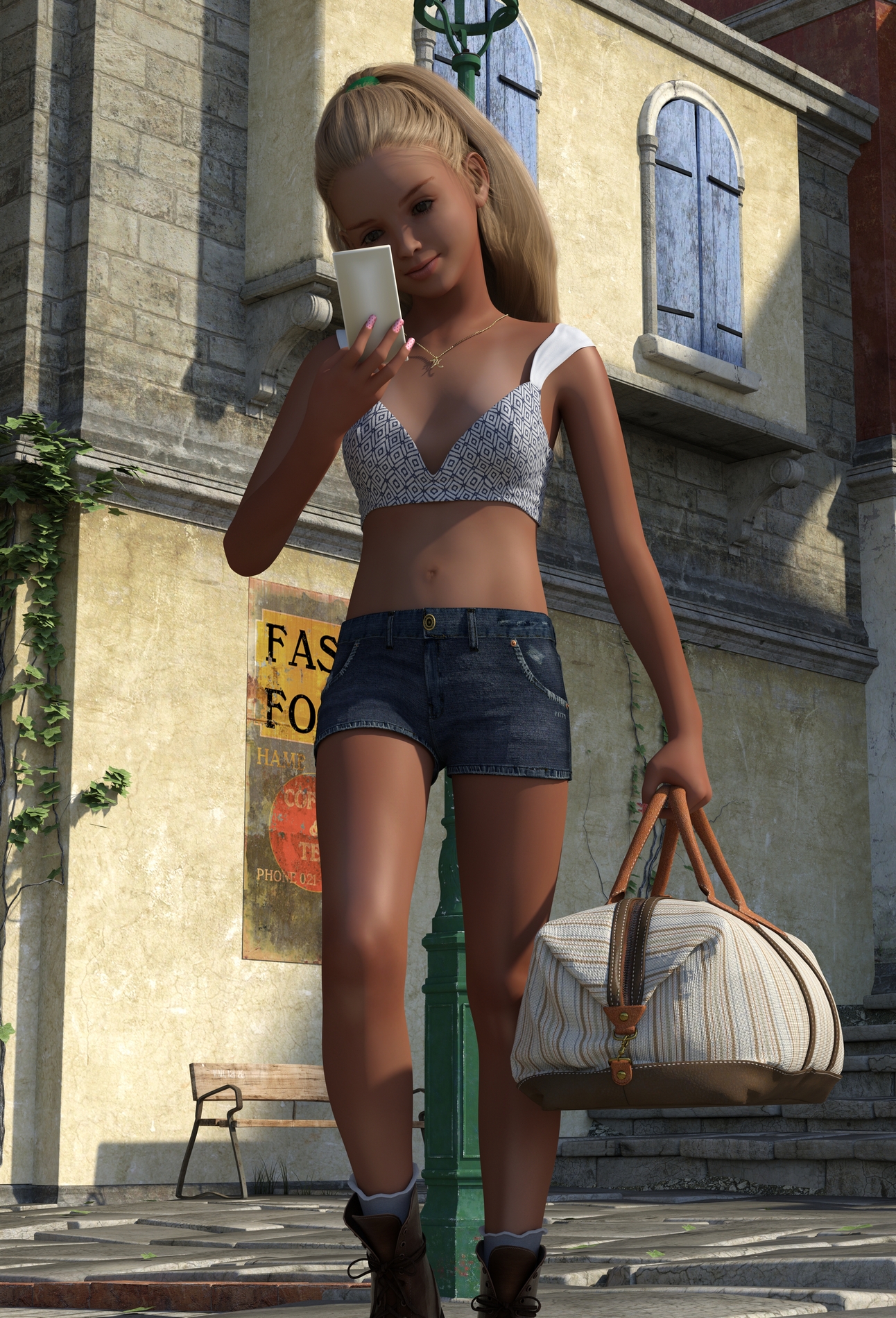 Ursprünglich fand ich den doch recht toonhaften Charakter Haley von 3D Universy nicht besonders, aber mit anderen Haaren und teilweise anderer Kleidung und richtig in Szene gesetzt, kommt sie dann doch recht gut herüber, find ich jedenfalls.