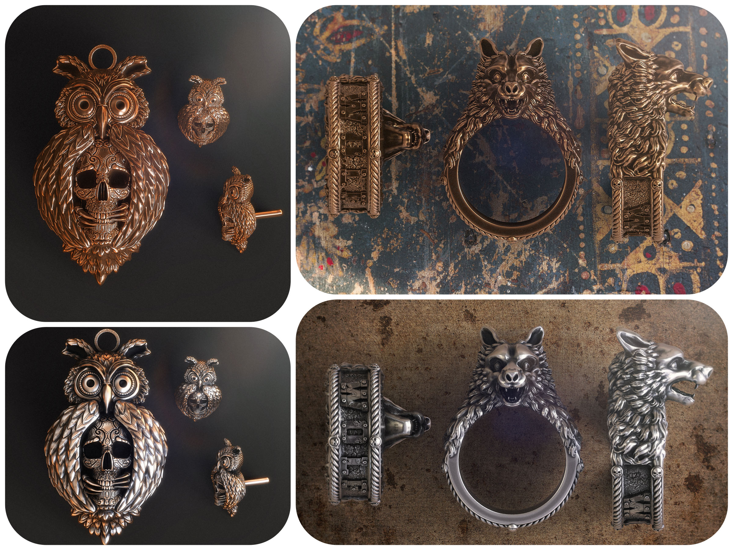 Zbrush 4r7 Eulen Anhänger und Ohrring & Wolf Ring....
