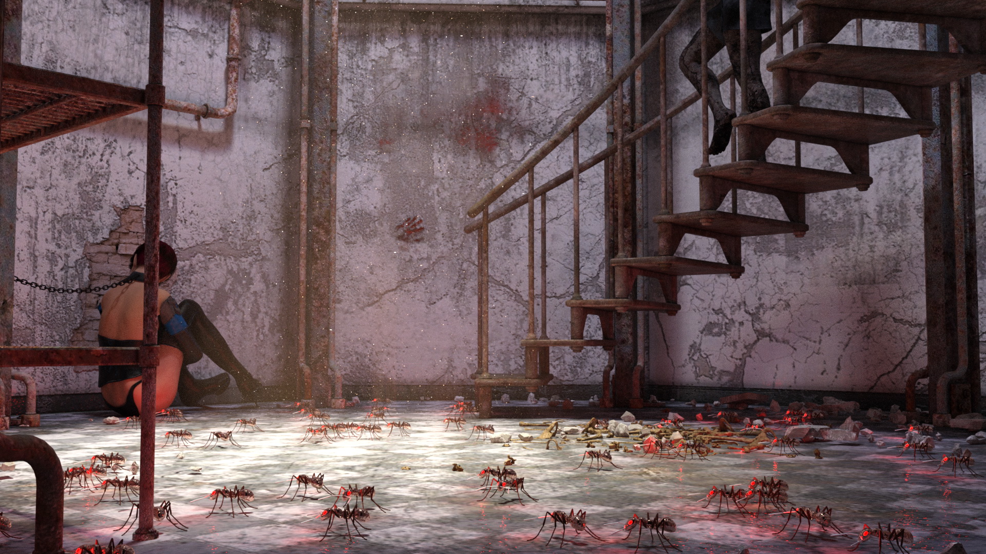 • Der Sinn dieses Bildes entzieht sich mir etwas. Warten die Ameisen auf das Ableben der Angeketteten?