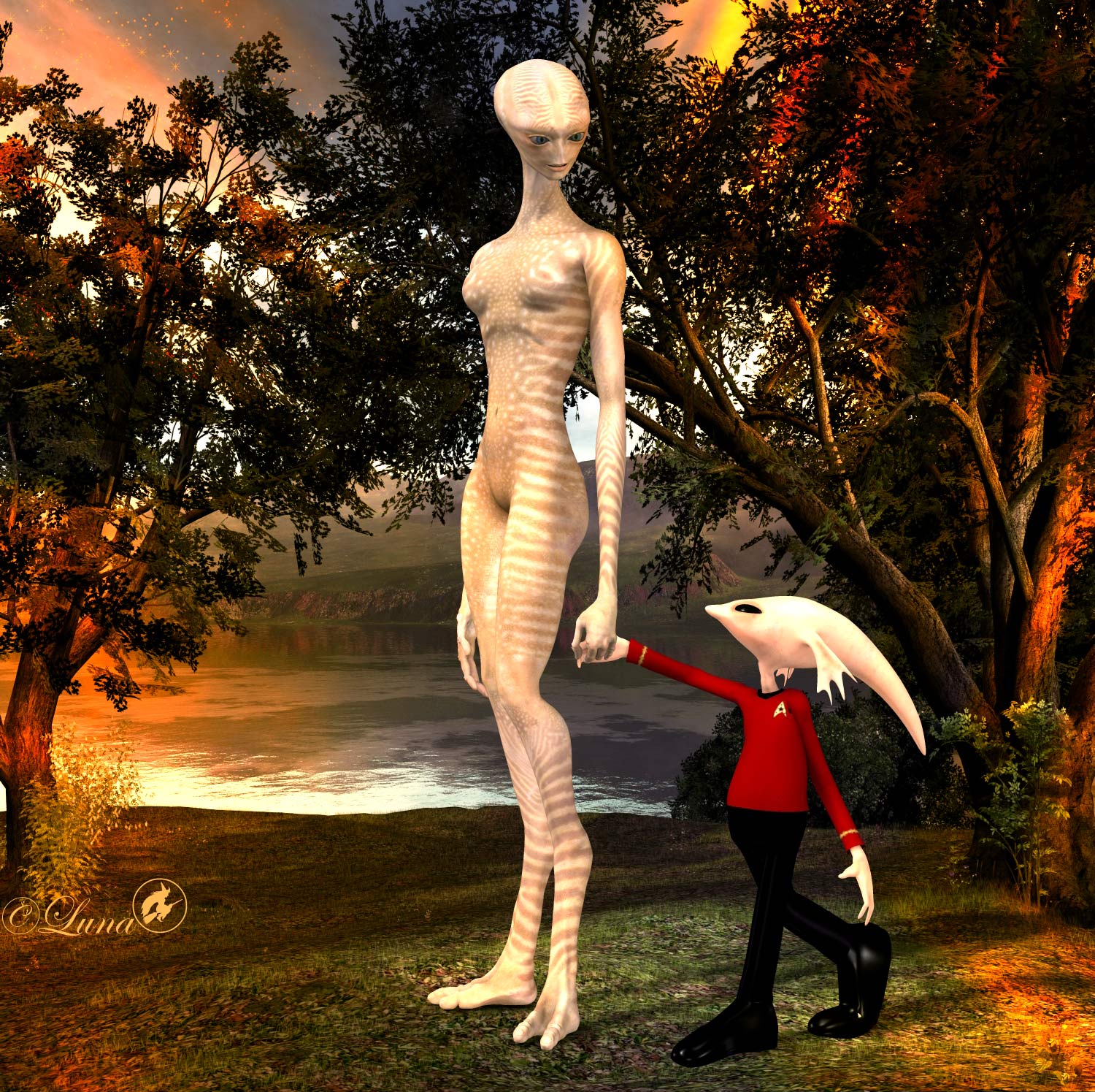 Hier nun zwei Alien beim Spaziergang im Park, wahrscheinlich fuehrten die beiden ein philosophisches Gespraech ![]()