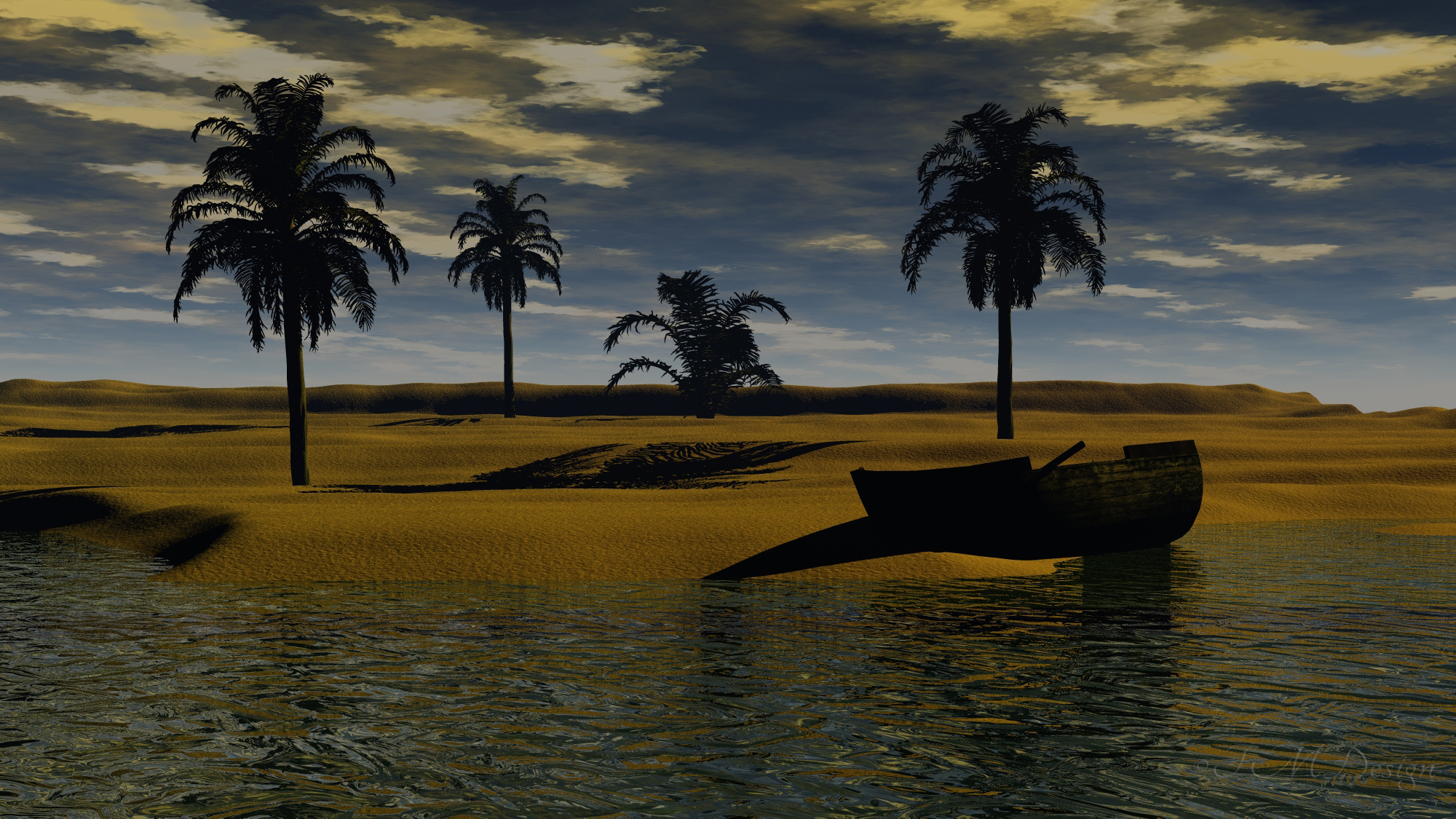 Die Abenddämmerung ist ja auch ganz in Ordnung. Die Schatten sind etwas zu hart und die Palmen könnten ein etwas helleres Grün vertragen.