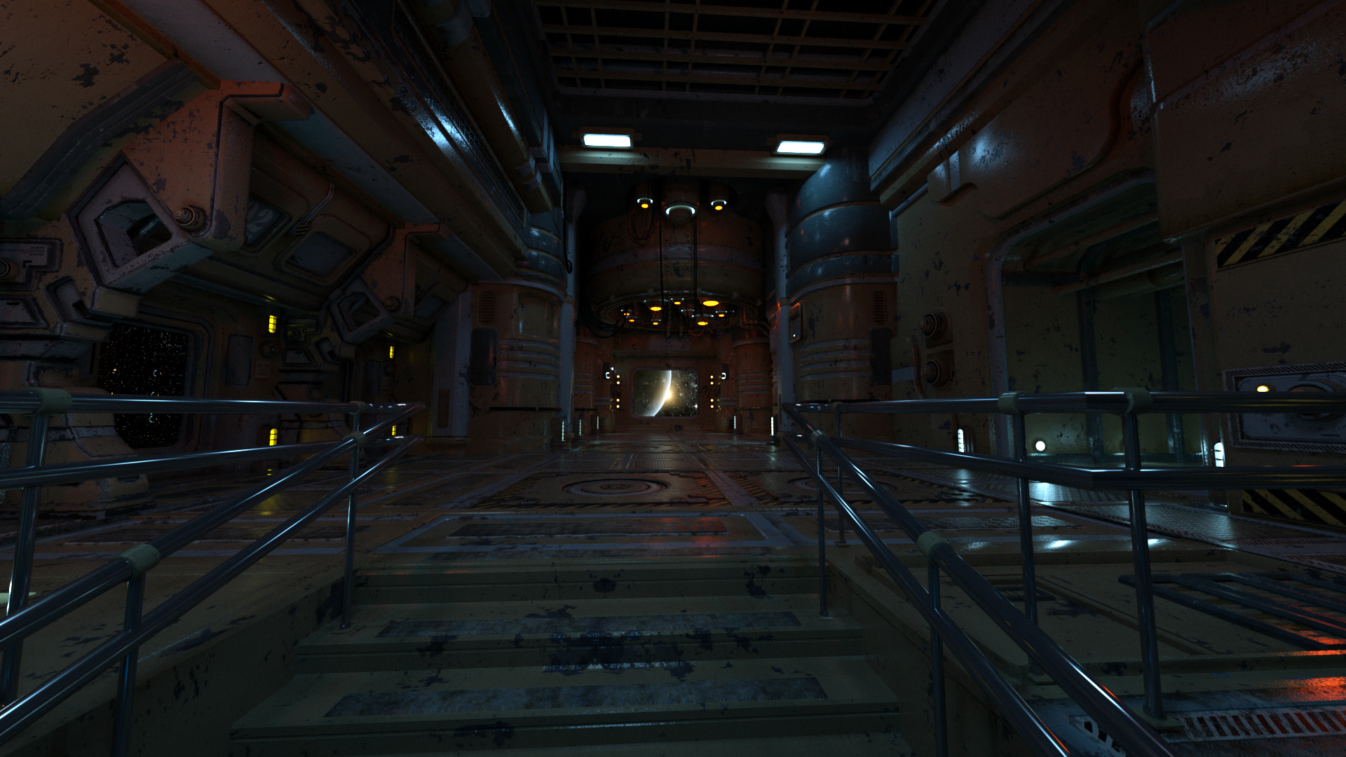 Der Planet draußen ist auch nur ein angebapptes Bild, via Octane zum Leuchten gebracht.