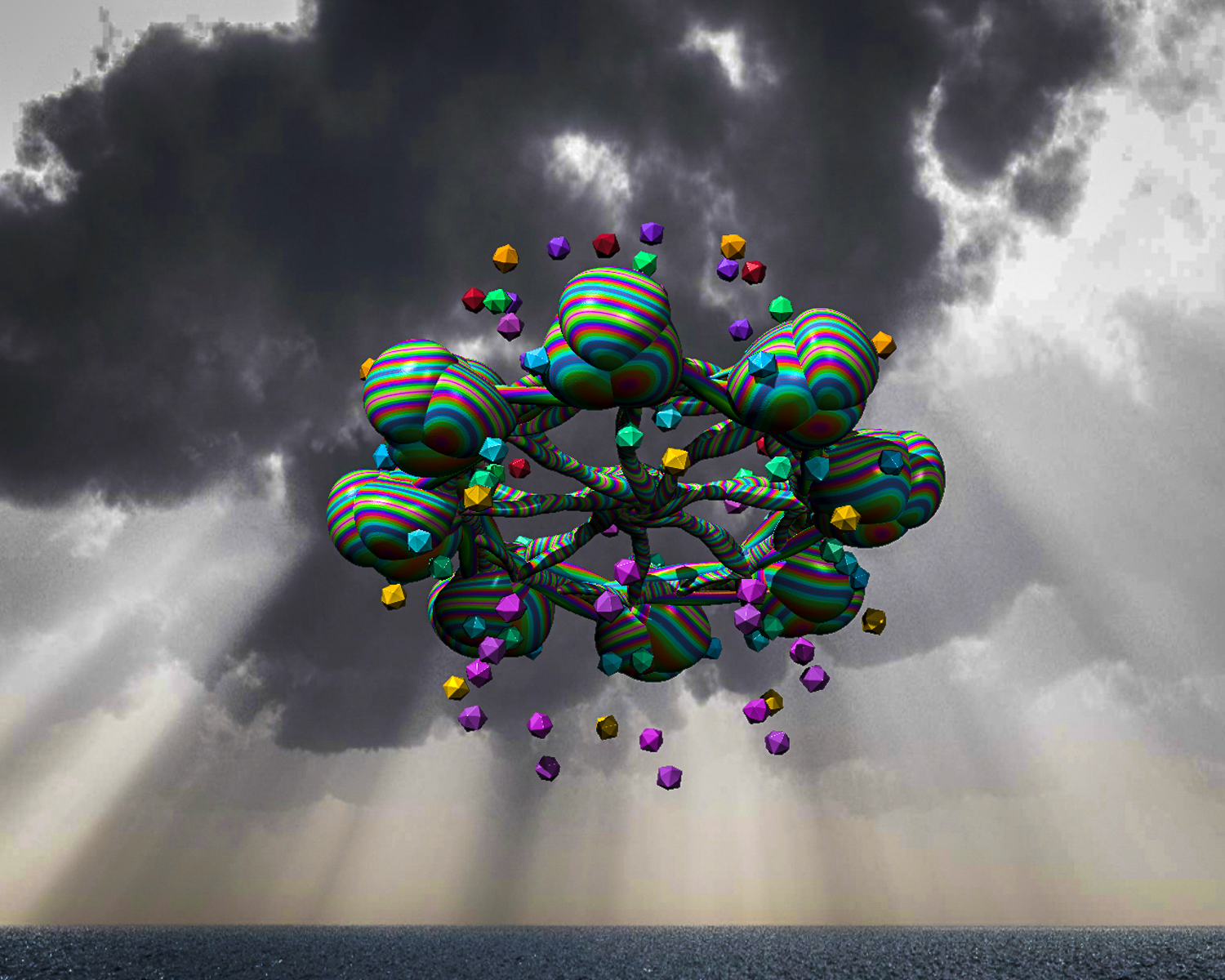 Das kunterbunte "Raumschiff" ist mit XenoDream gebaut und der Hintergrund ist ein Vue-Himmel.