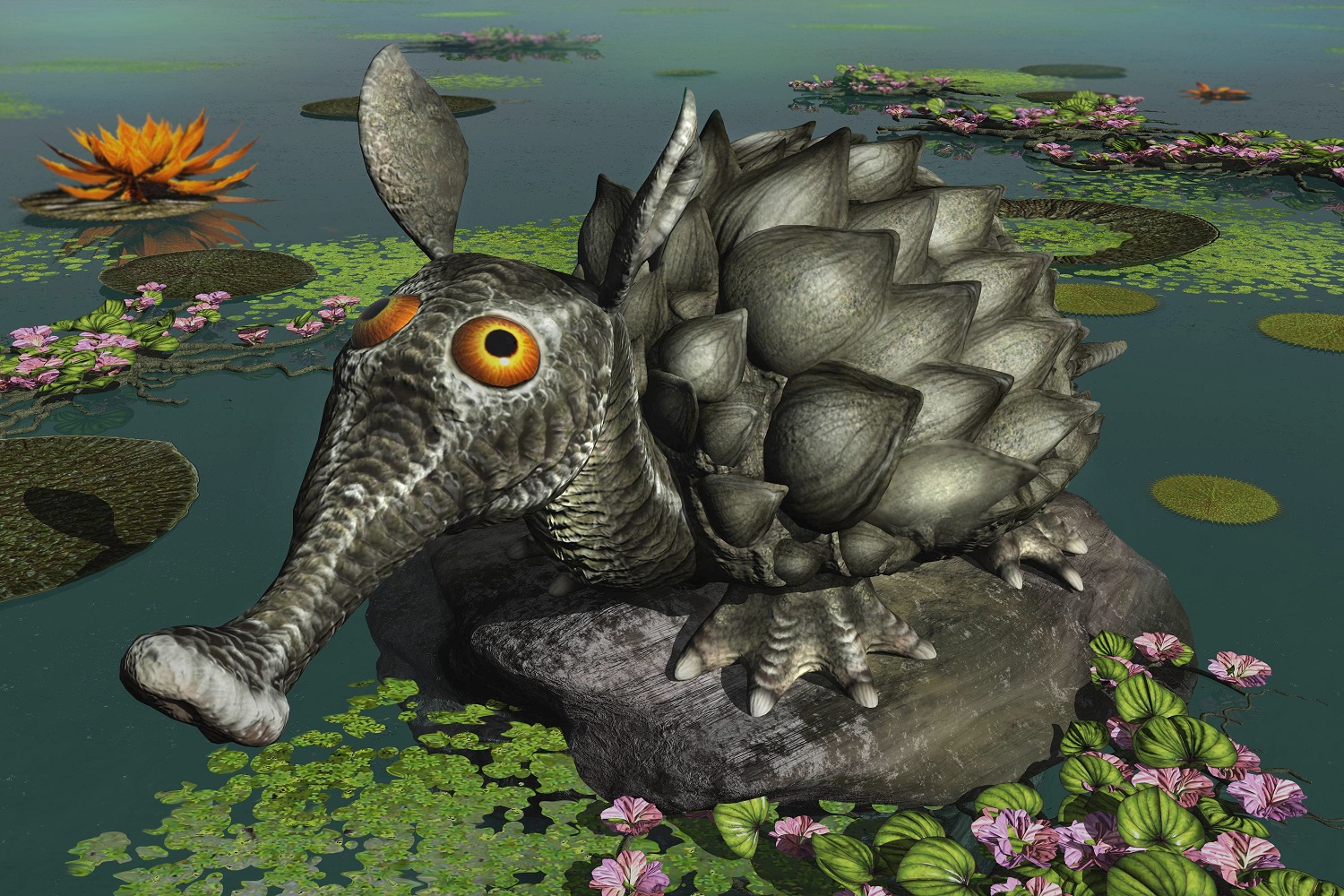 Der Schuppenwatschler lebt im Schlamm der küstennahen Sümpfe Ari Moons. er ernährt sich von kleinen Tieren, die er geschickt mit seiner langen Zunge erbeutet.