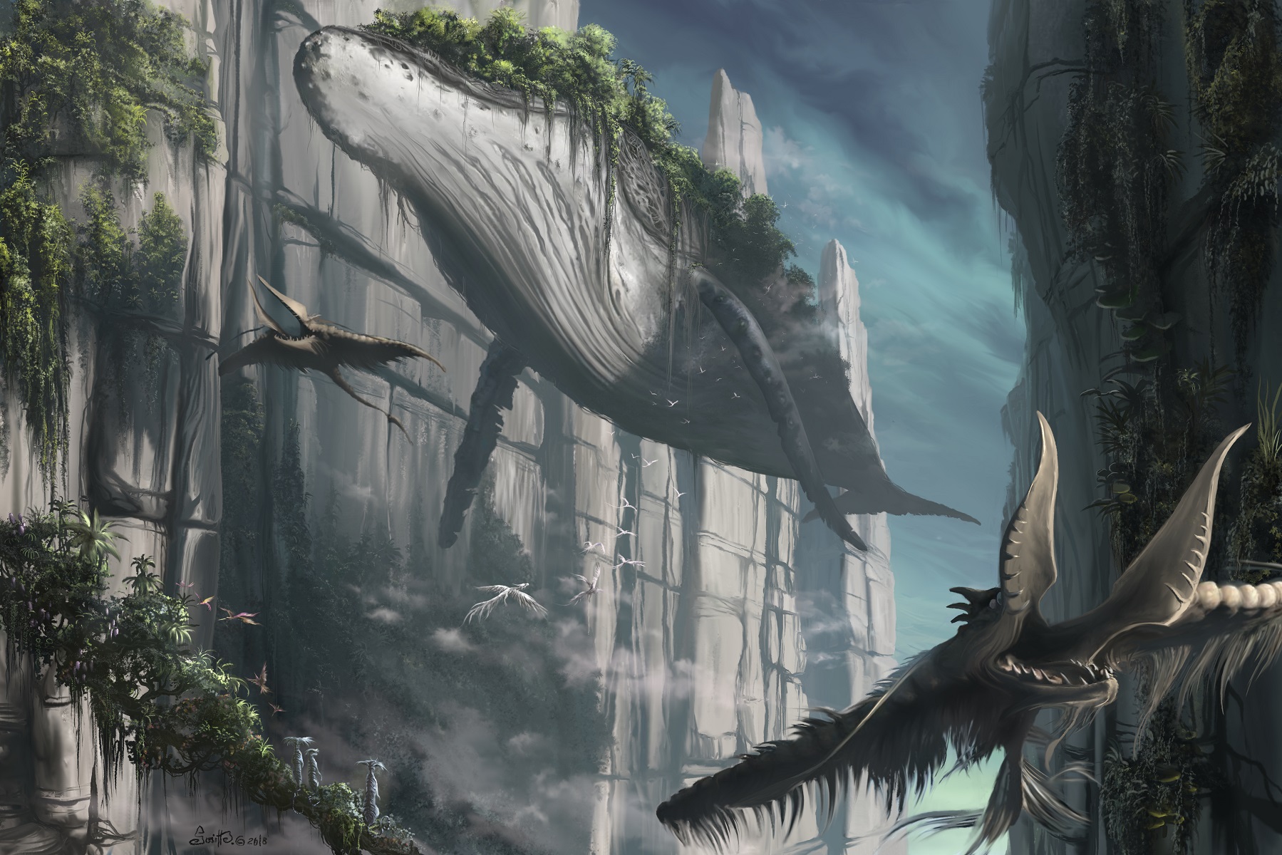 Das Bild habe ich gestern zufällig auf artstation gefunden. Der große Wal kommt sehr majestätisch rüber. Ganz große Klasse , bin wieder sehr begeistert von diesem Werk.