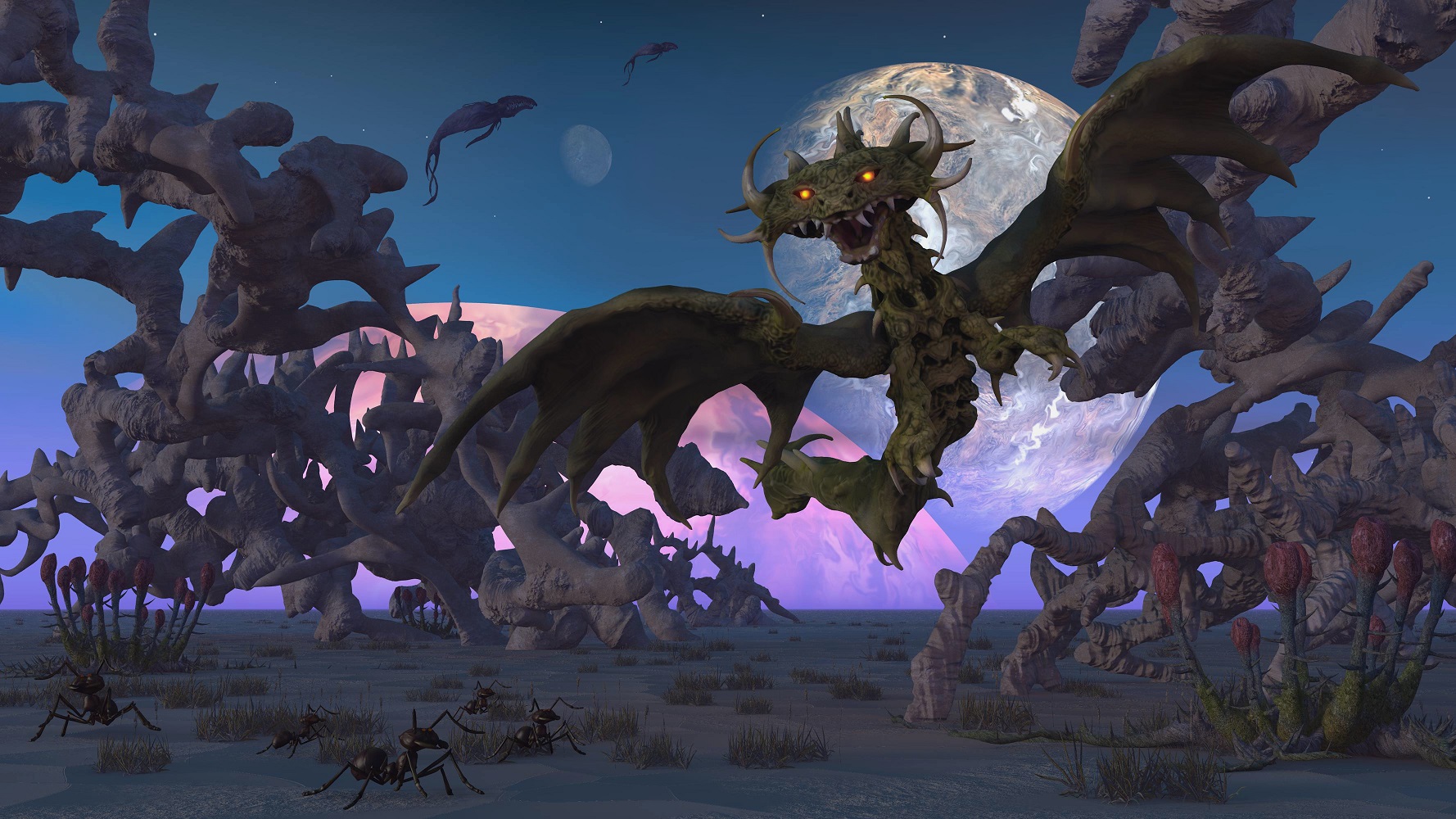 Eine der gefährlichsten drachenarten Ari Moons ist der berüchtigte Teufelsdrachen. In hellen Vollmondnächten begiebt esr sich auf die Jagt. Nun ist vorsicht geboten, Teufelsdrachen sind bei ihrer Beute nicht wählerisch.