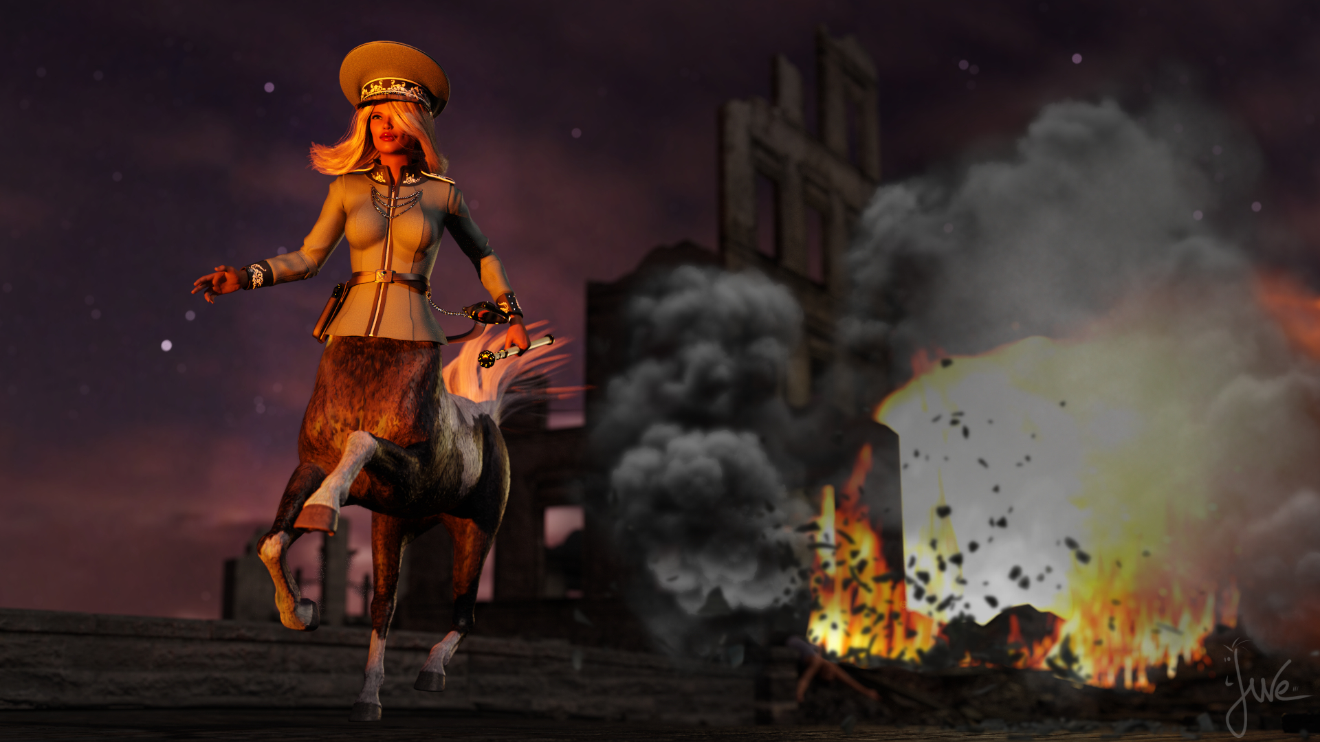 Der Geruch von Feuer lag in der Luft. Nicht mehr lange... drei... zwei... eins... Mit einem ohrenbetäubenden Donnern explodierte das Munitionslager der Separatisten, während sie aus der Gefahrenzone galoppierte. Diese Gruppe würde so schnell keinen Ärger mehr machen. Verdammte Renegaten - jeder hatte seinen Platz im System, aber diese verrückten Menschen wollten es nicht einsehen. Cynthia lächelte ein böses Lächeln. Wenn Kinder ihren Platz nicht kannten lernten sie die Gerte kennen. Wenn Erwachsene ihren Platz nicht kannten, wurde ihnen beigebracht, warum die Militärkaste die Elite war. Und dabei war es völlig egal, ob es Centauri waren oder Menschen. Natürlich hätte sie das Lager auch mit einem Atmosphärenjäger plattmachen können. Aber der Lerneffekt war höher, wenn eine einzelne Centauri ein Lager aus 30 Menschen vernichtete, als wenn das eine Maschine tat.