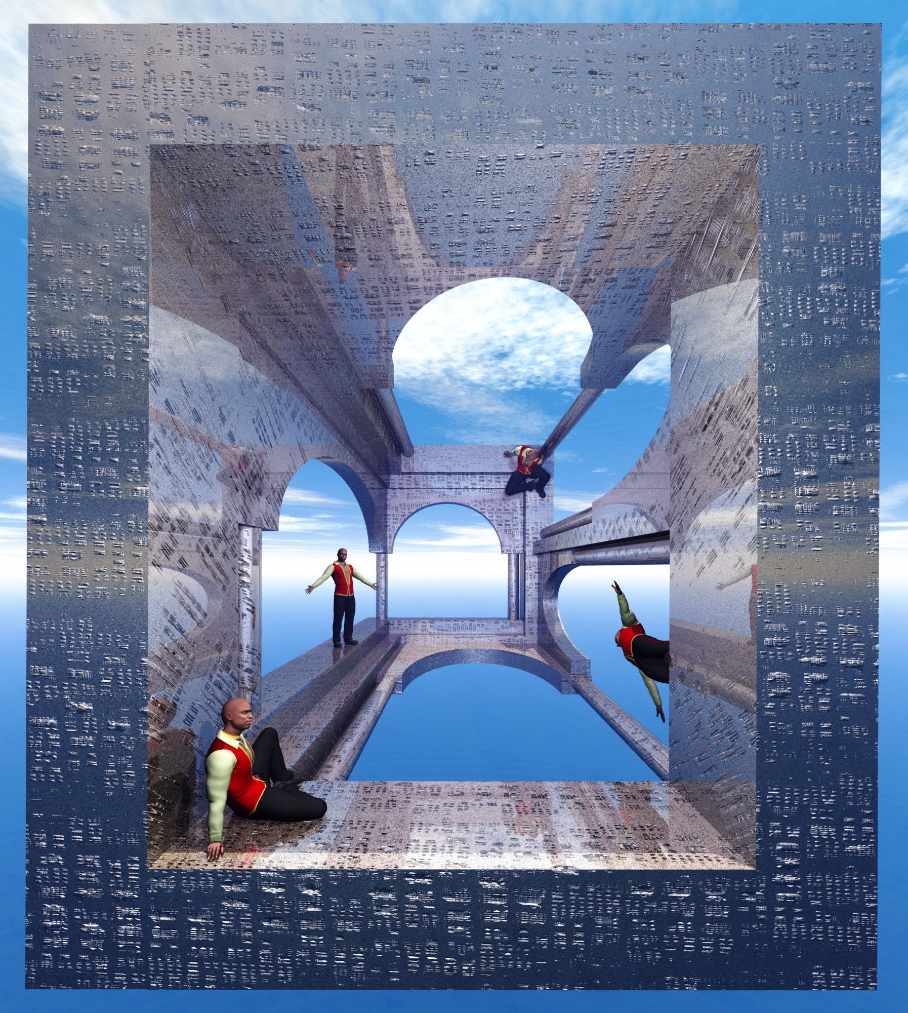 Hallo, bin neu hier und bin jetzt seit ca. 3-4 Monaten mit Bryce am basteln. Dies ist ein Versuch aus einer Escher Grafik eine Bryce-Adaption zu machen.