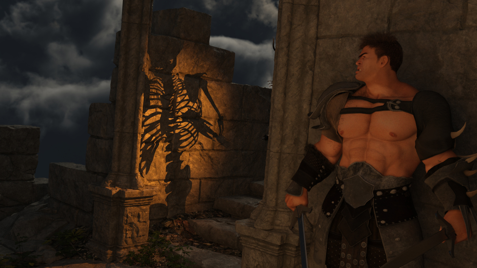 Brute 8 with Beastmaster Clothes, Gothic Ruins 2 (Stonemason), Skies of Iradiance, Mr. Scullywags, 1 Spotlight and 1 Ghostlight
