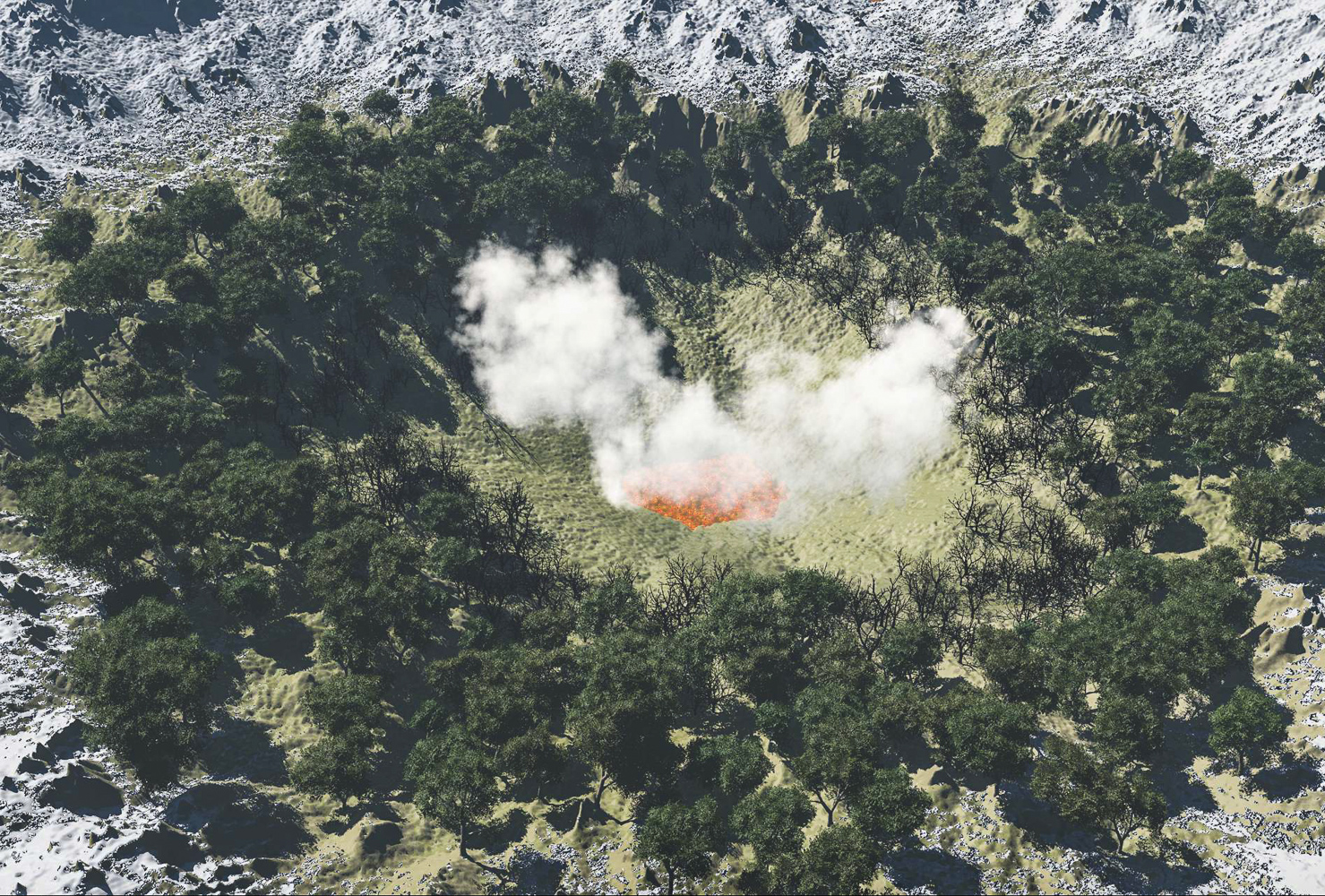Die Bäume werden hier nicht mehr allzu lange stehen. War wohl mal eine warme Quelle bevor die Lava das Wasser ganz verdampfen ließ. Schöne Terrainstudie .