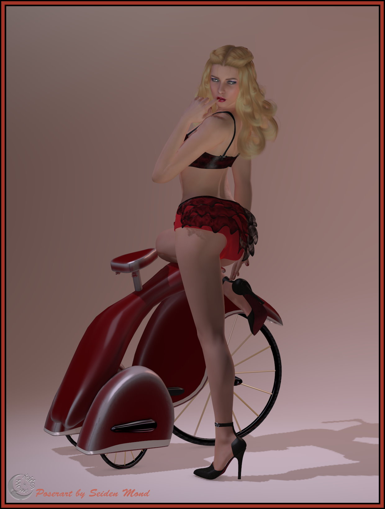 Beides schön geformt: Das Dreirad und die Lady. Wirkt wie ein PinUp der 50er. Nice work.