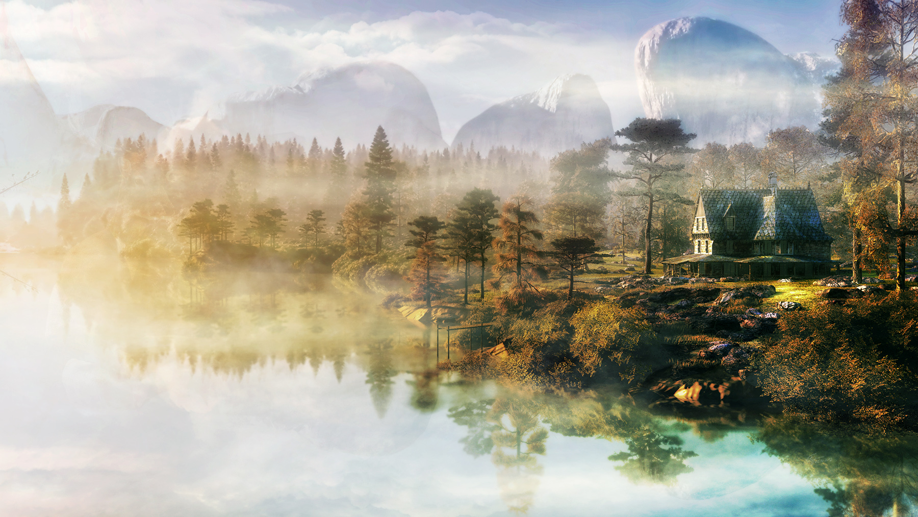 Tolle Atmosphäre. Der Nebel ist wirklich sehr realistisch. Das Haus passt von der Architektur her auch perfekt in Szenerie. Ein sehr schönes Bild, wie ich finde.