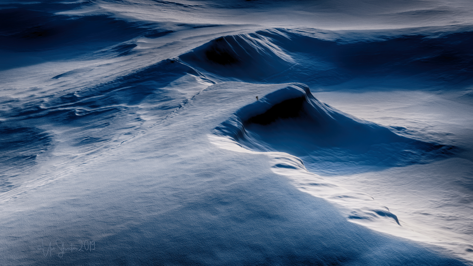 • Ein wirklich gelungenes Bild. Die Farben und der Kontrast bringen so richtig die Kälte herüber. Und dieser arme Wanderer hat wirklich noch was vor sich!