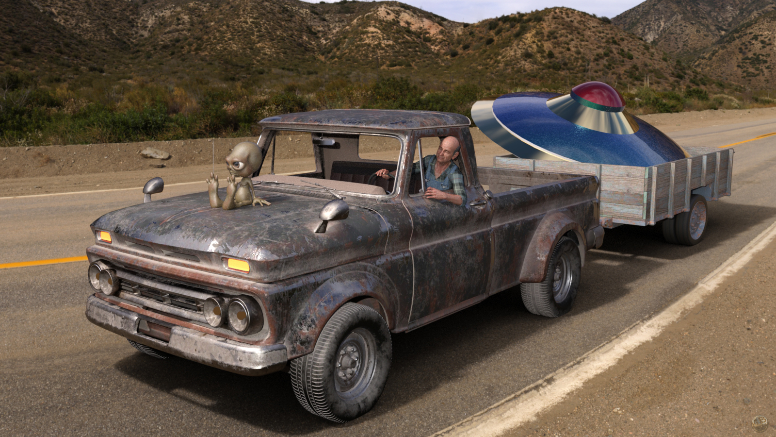 Stimmt. Siehe oben. Shader waren das Hauptproblem. Die Untertasse ist ein ganz primitives Prop von Sharecg ohne besondere Texturen. War schon froh, dass die sich wenigstens shadern ließ.