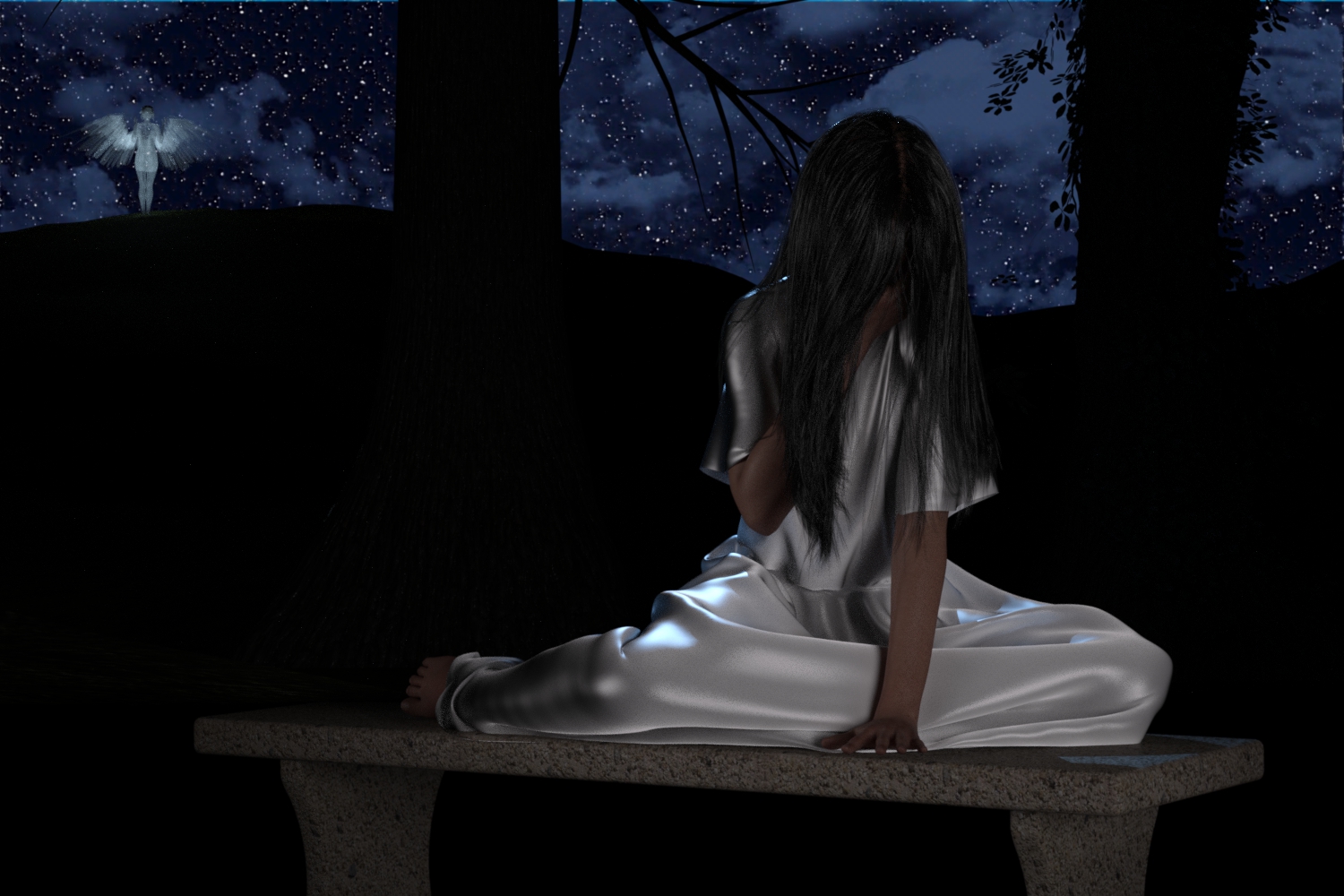 Vielleicht hätte ich den Engel zwischen die Bäume rücken und das Bilder schmaler machen sollen.