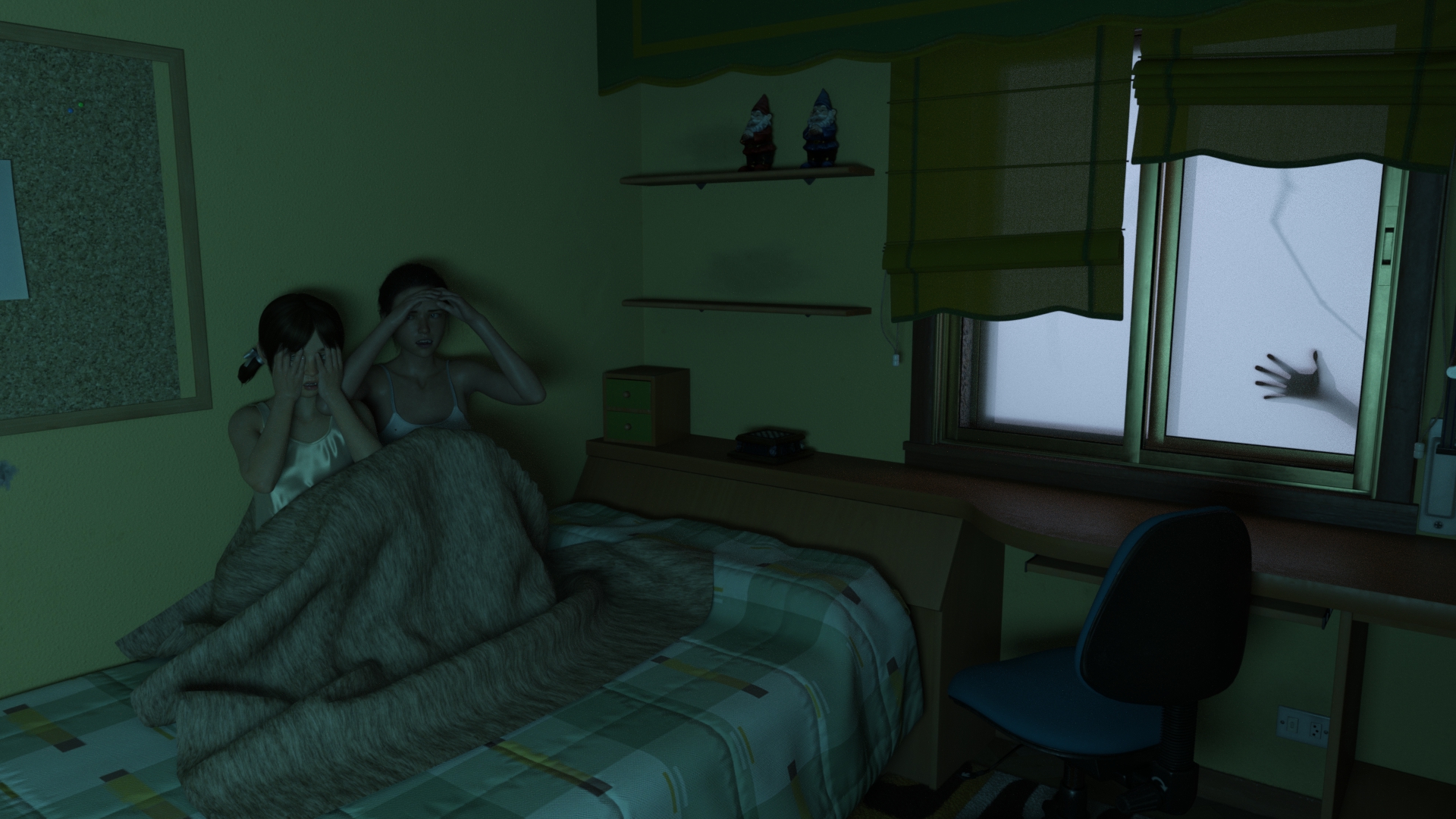 Die Gesten und Haltung der Mädels sind dir sehr gut gelungen und die Hand vorm Fenster rundet das Bild ab. Das etwas grünliche finde ich ok. Wir leben ja nicht mehr im Zeitalter des Schwarz-Weiß- Fernsehens. Achtet mal drauf. Der Fernseher beleuchtet das Zimmer immer in der Farbschattierung, die auf dem Bildschirm vorherrscht.