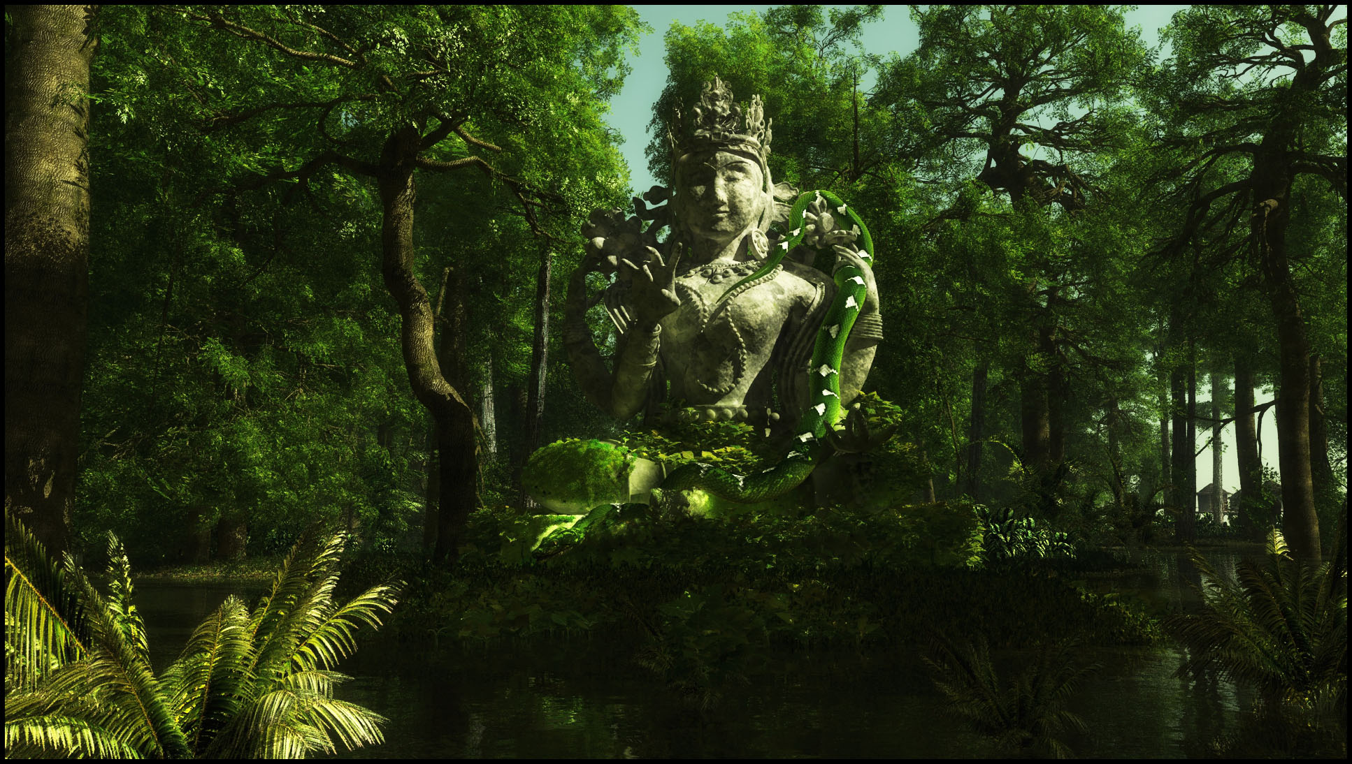 Die Schlange hast Du toll um die Statue "gefädelt".